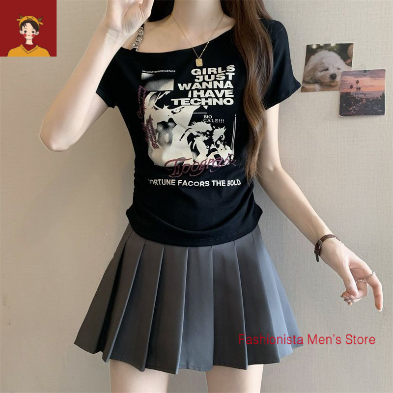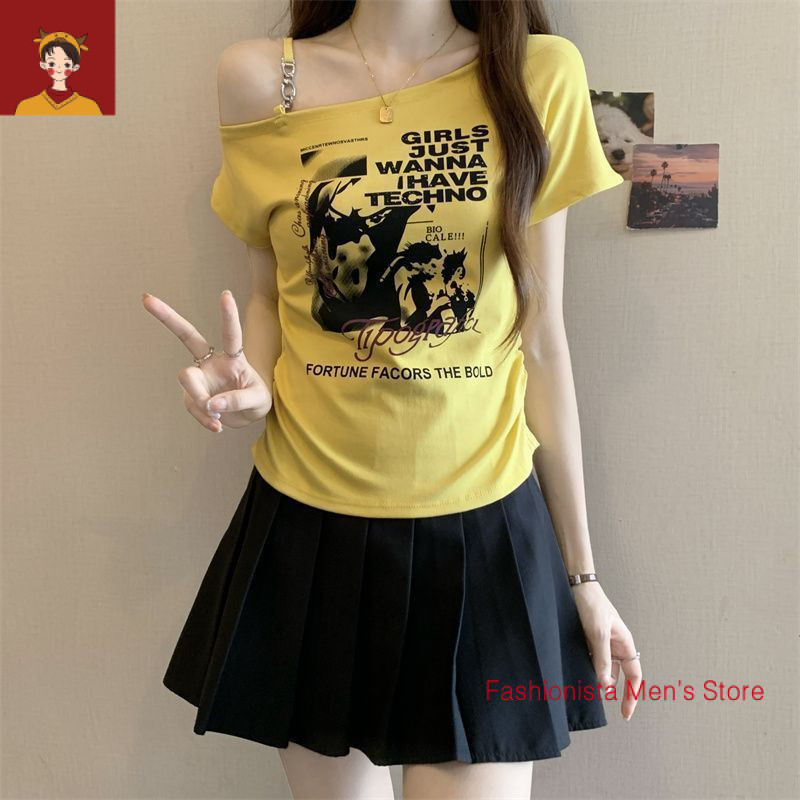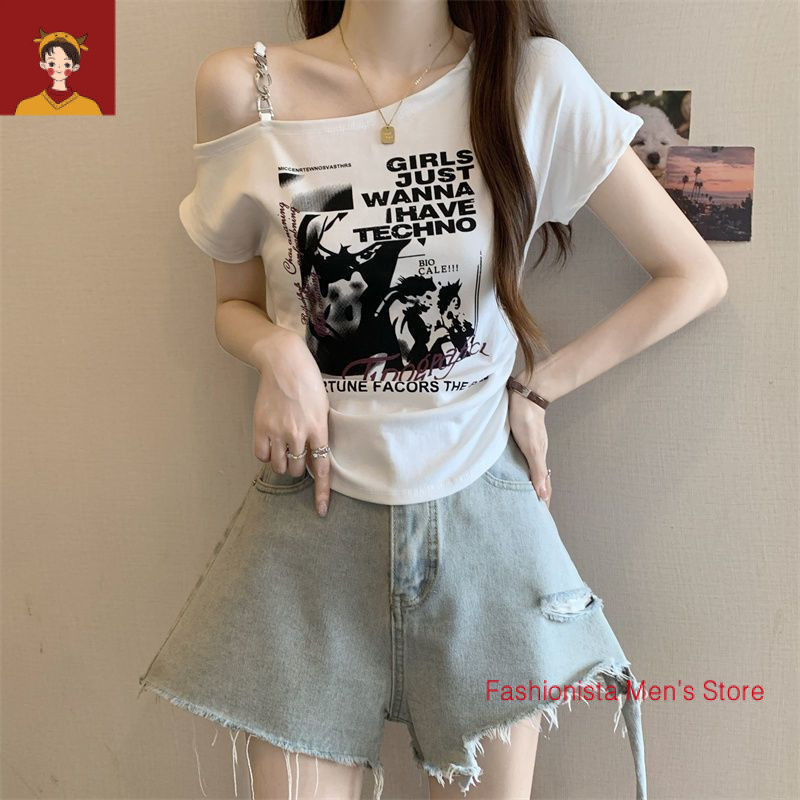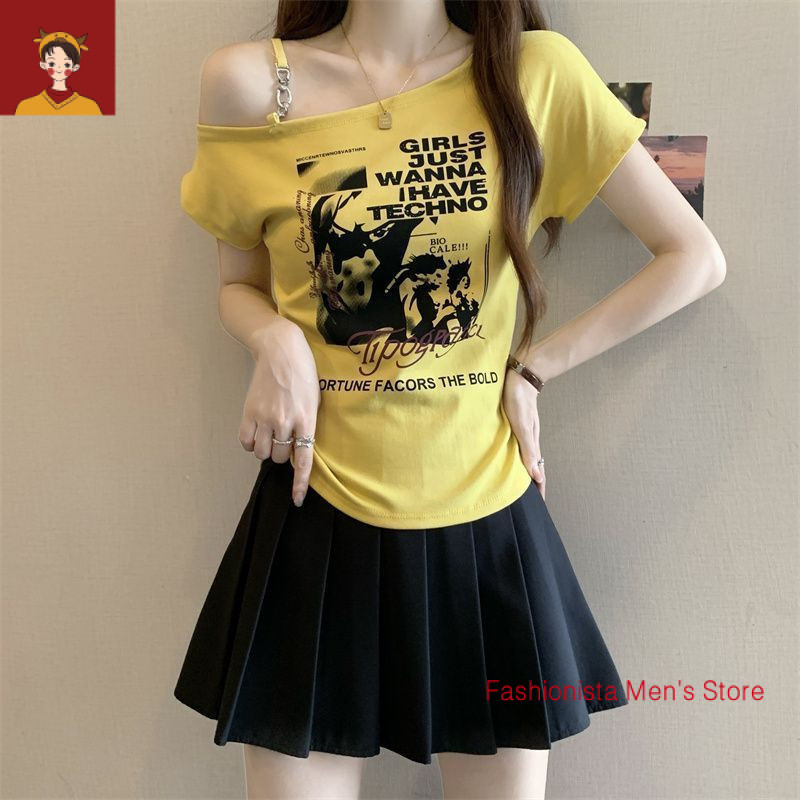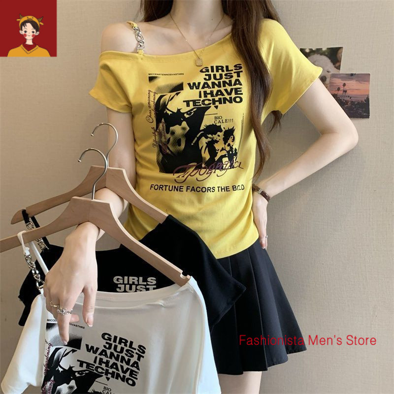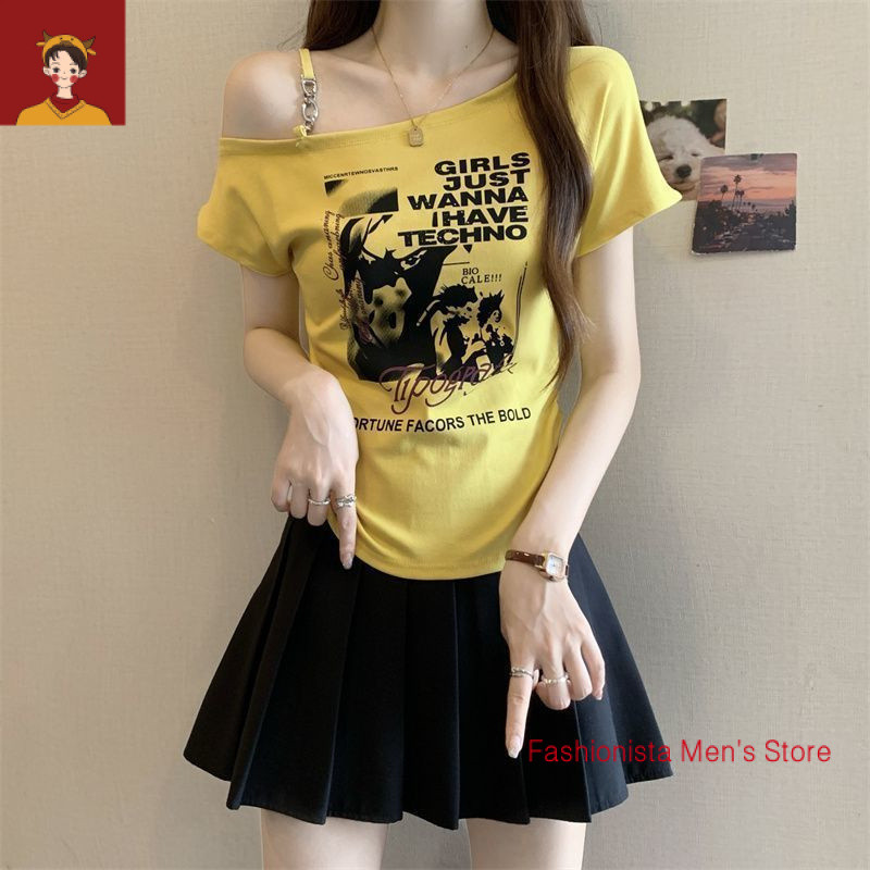 tshirt woman Women t shirt 大码印花露肩短袖T恤女夏季2025新款韩版胖mm宽松显瘦百搭上衣女 plus-size-extra-large-size-oversize-fat-big-size-women-tops-short-sleeves-T-shirts Women's Large Printed Strapless T-Shirt | Summer 2025