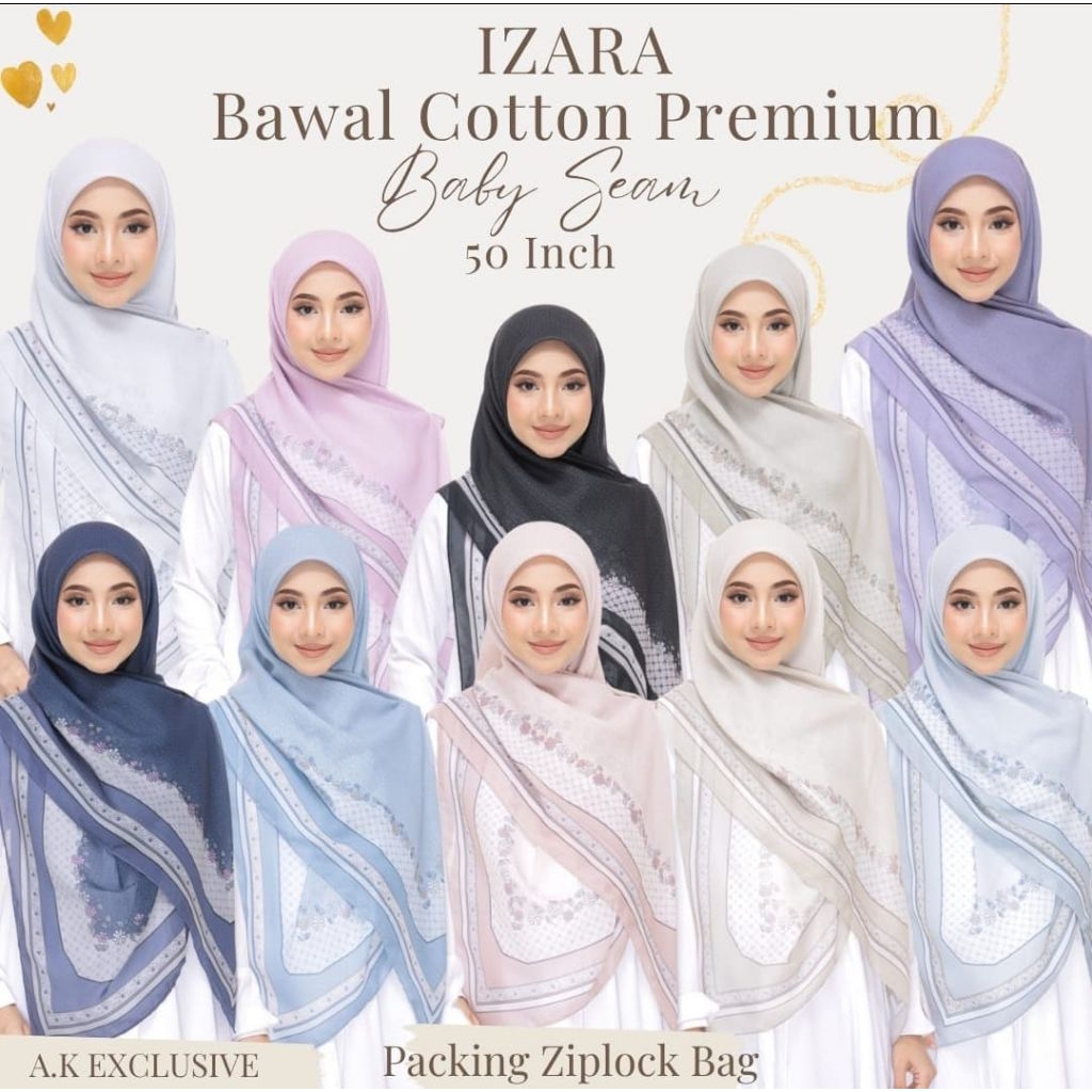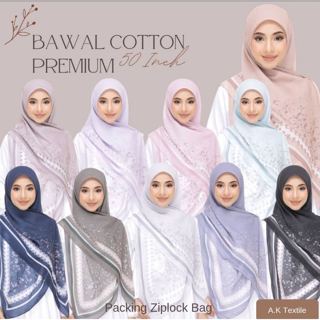 Tudung Bawal Cotton Printed Bidang 50 - Premium Quality Square Hijab Corak Labuh