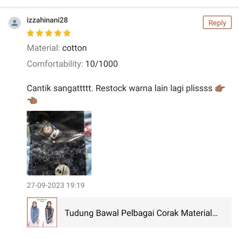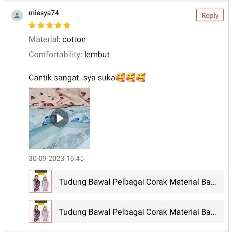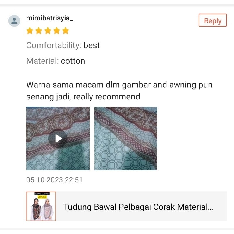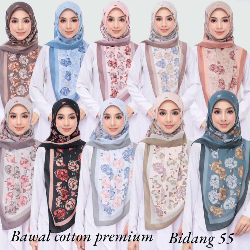 Tudung Bawal Labuh Printed Cotton Corak Bunga Bidang 55