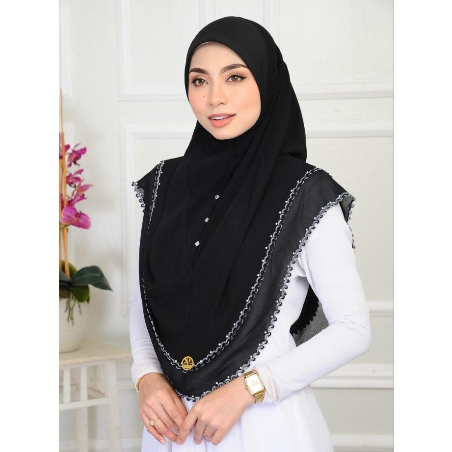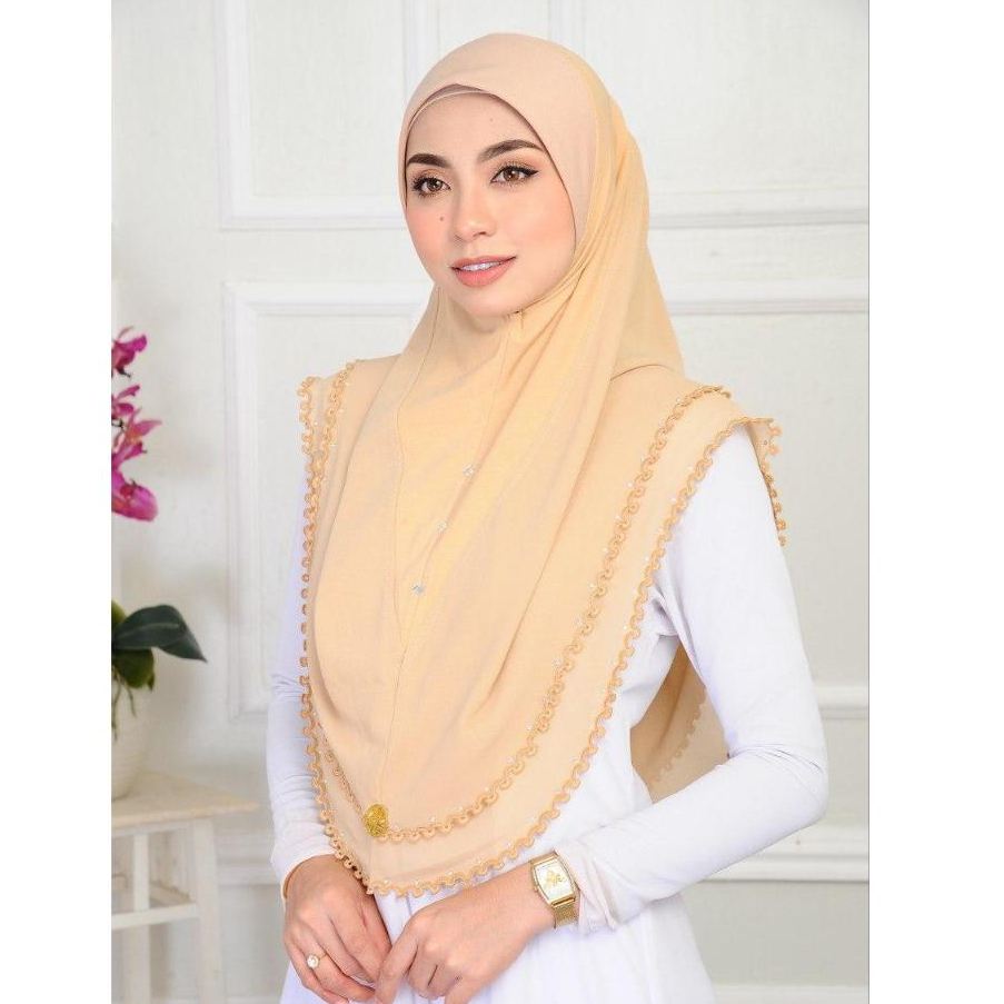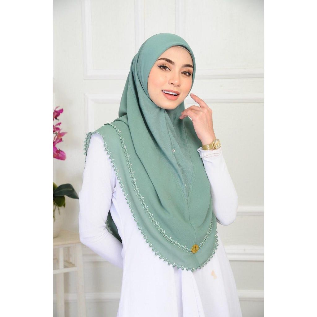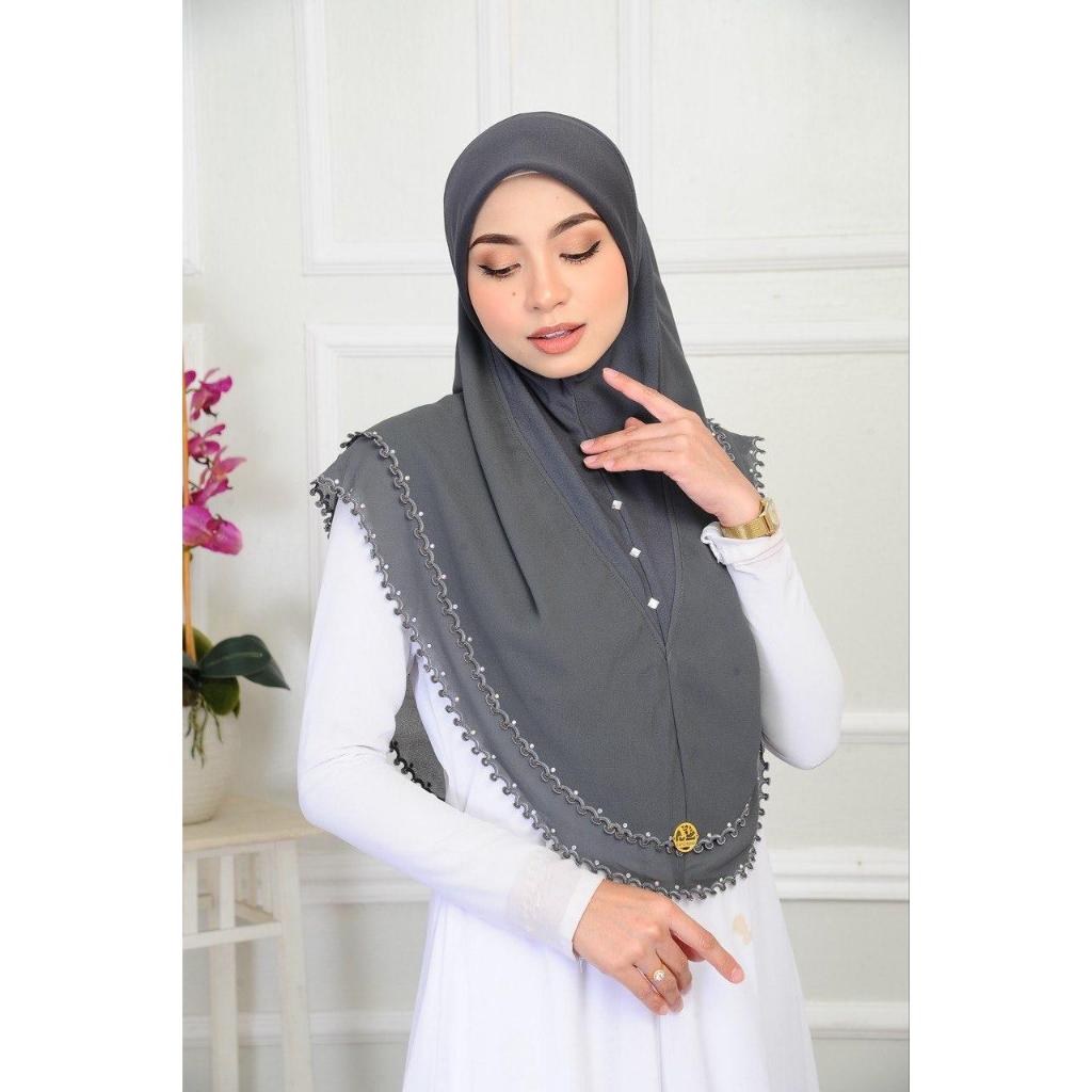 Tudung Sarung Azra 2 Layer Bersulam Ada Batu Kain Heavy Chiffon Awning Scuba Wanita Muslimah Hijab