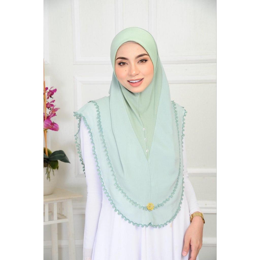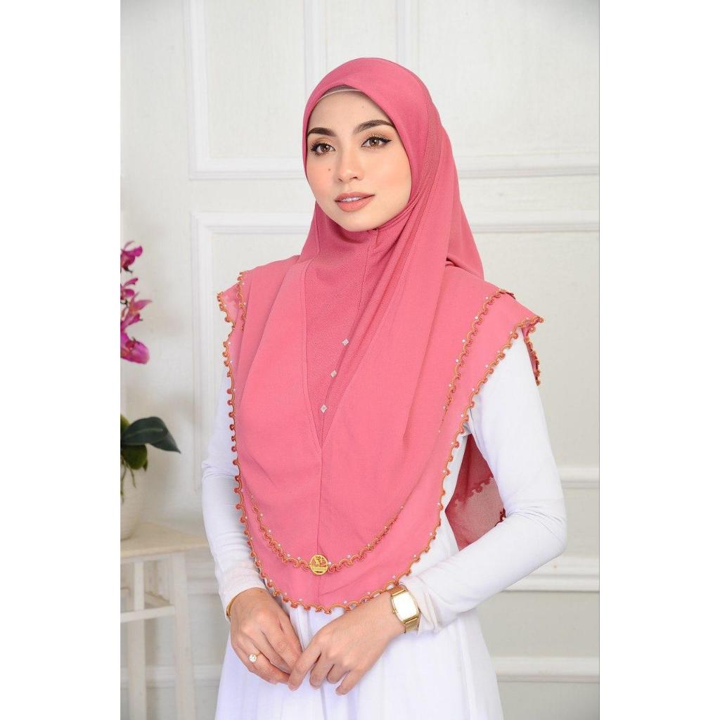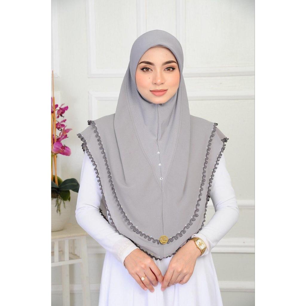 Tudung Sarung Azra 2 Layer Bersulam Ada Batu Kain Heavy Chiffon Awning Scuba Wanita Muslimah Hijab