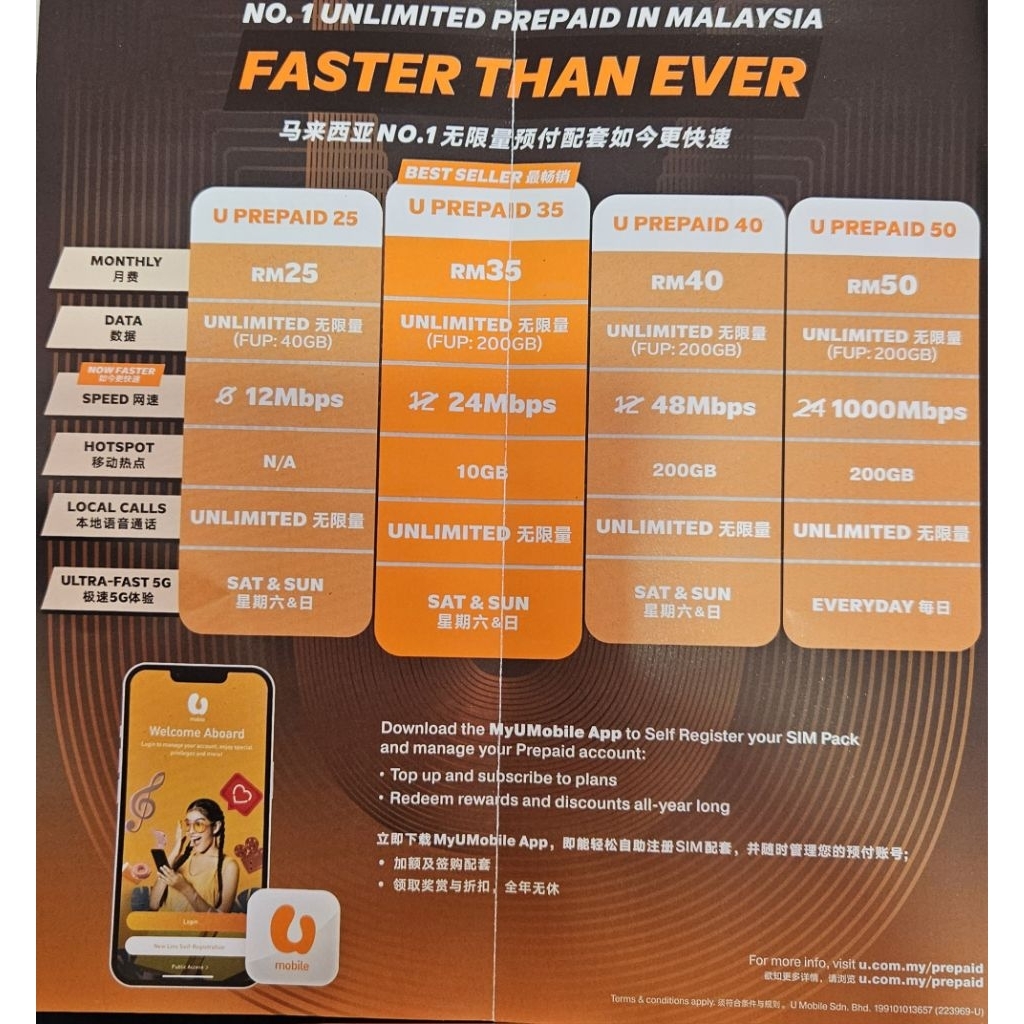 U mobile prepaid 5G ready sim card / Sim kad prepaid Vip numbers / U mobile 预付卡 U101