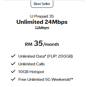 U Mobile Prepaid Sim U35 x 1Month (MYKAD ,PASSPORT)
