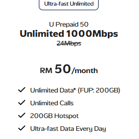 U Mobile Prepaid Sim U50 1Month (MYKAD ,PASSPORT)