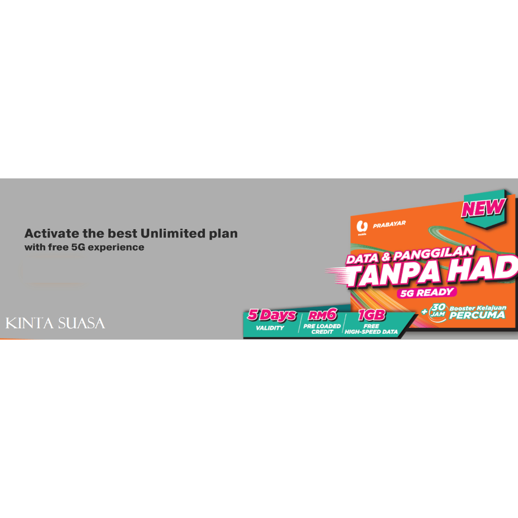 U Mobile U40 5G Pack Unlimited Internet Prepaid Sim Card ONLY #预付卡#ESIM