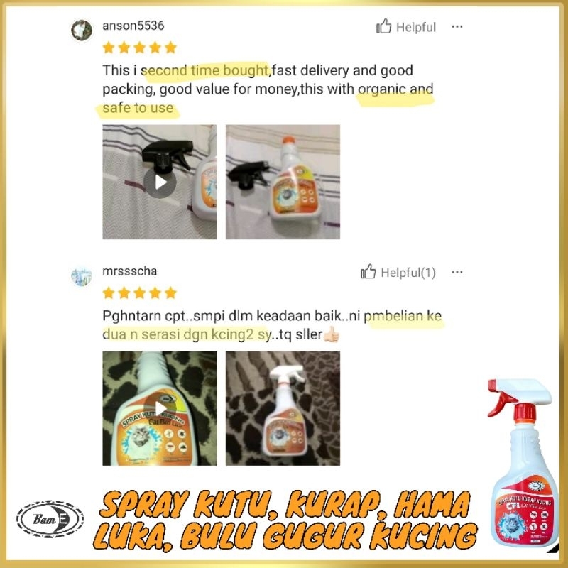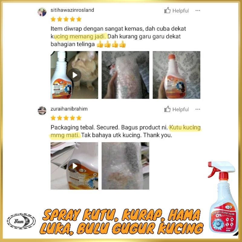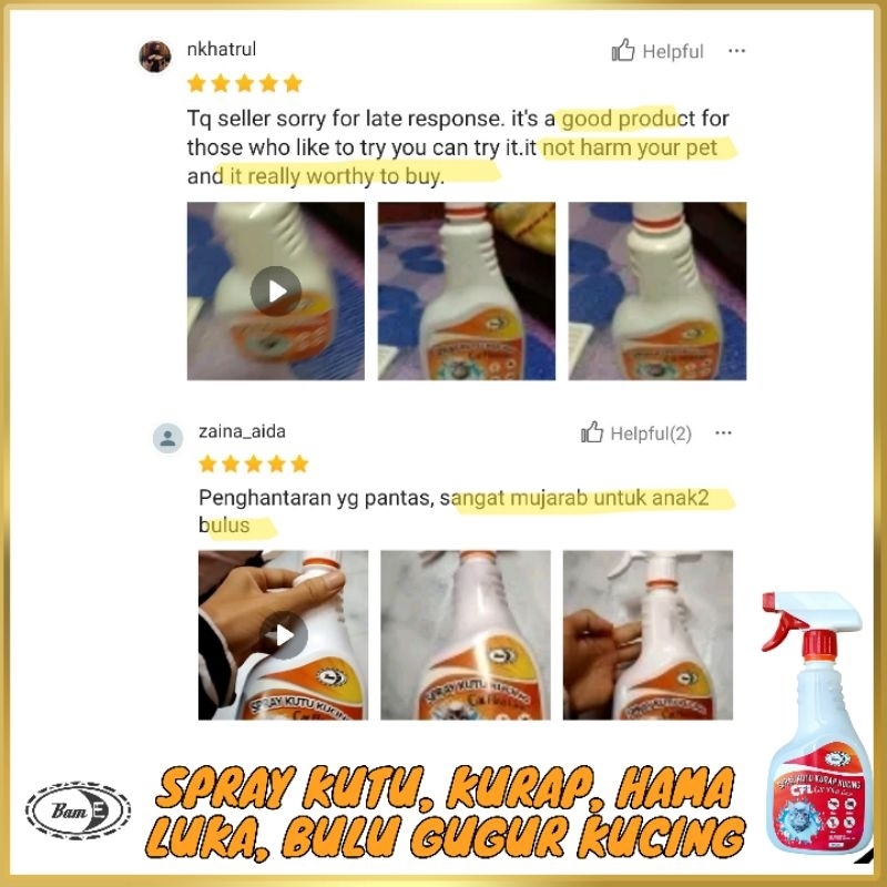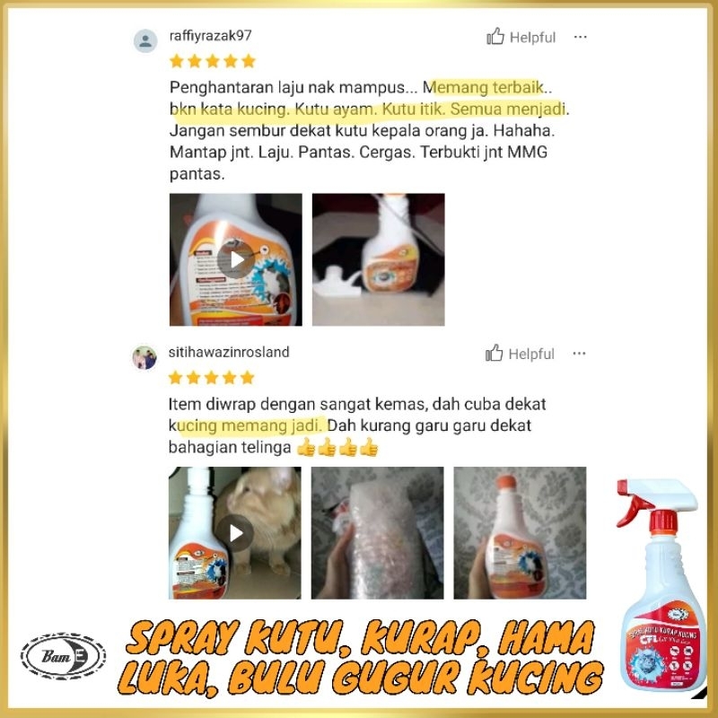 Ubat Kutu Kucing Ubat Kurap Kucing Flea Cat Spray Paling Berkesan fungus hama luka bulu gugur lice dog anjing bam e ubax