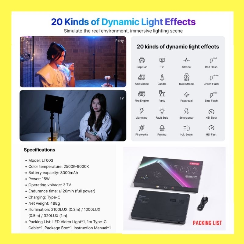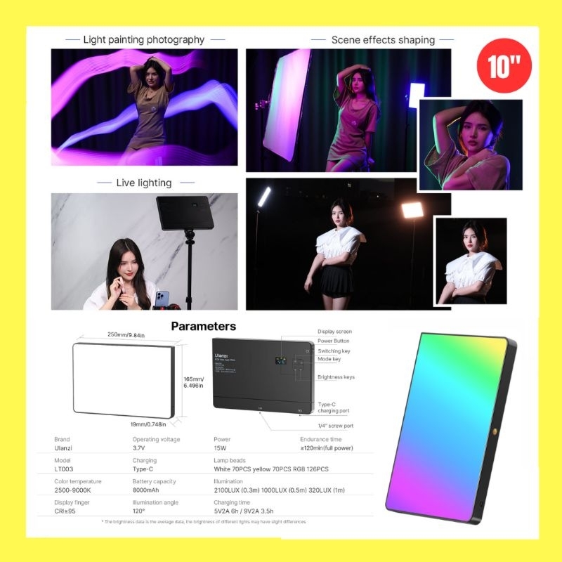 Ulanzi LT003 10" RGB LED Video Lighting | 2100 Lux | CT 2500K - 9000K | Battery 8000mAh | 1 Year Warranty
