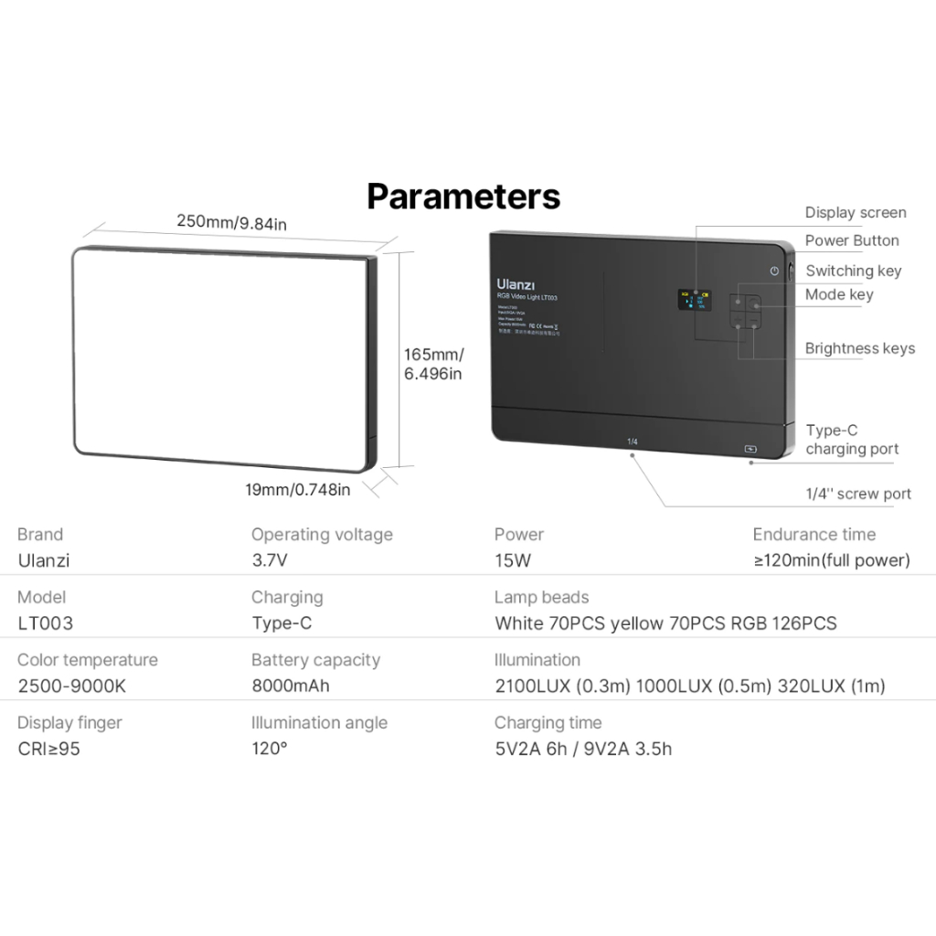 Ulanzi LT003 RGB LED Video Panel Light 10inch Pocket Fill Light Dimmable 2500-9000K 4000mAh 3099