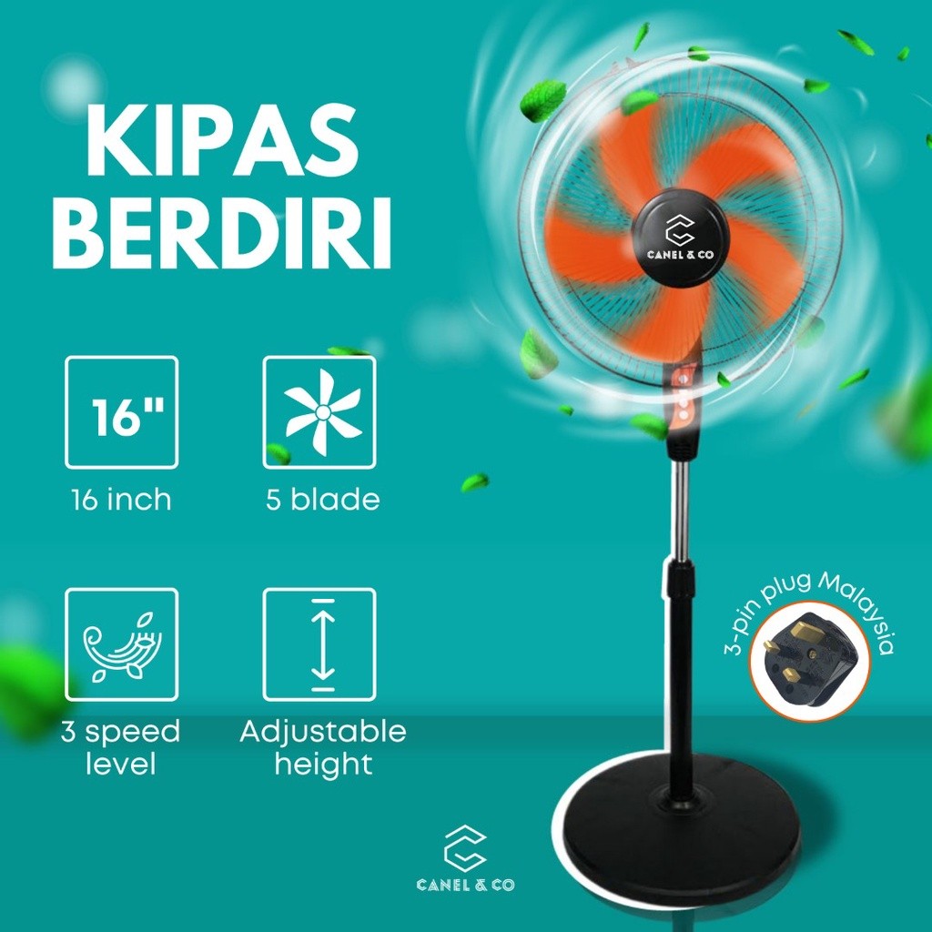 Ultra Strong Floor Stand Fan 16 & 18 Inch 5 blades 3 Speed Kipas Berdiri Angin Kuat Diri 风扇家用 Fans