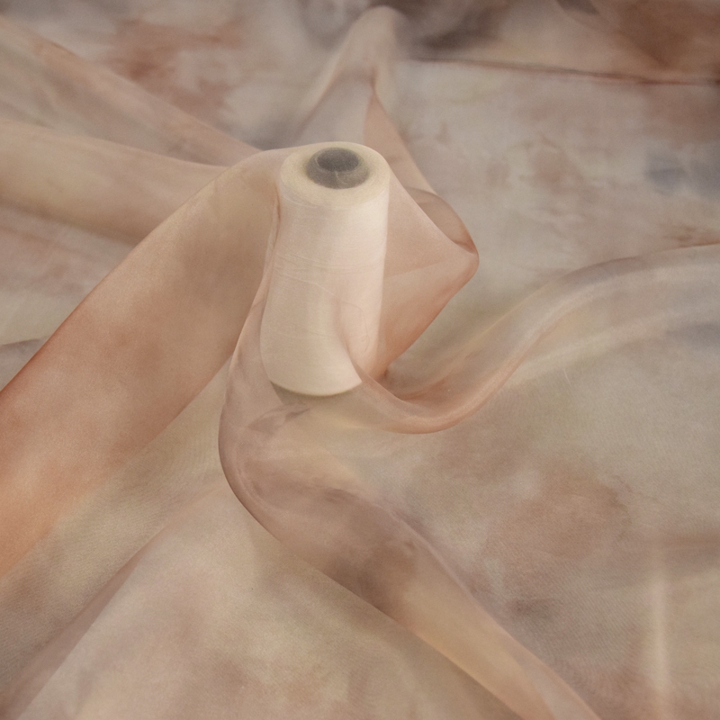 Ultra Thin Yarn Brown Print Transparent Chiffon Fabric for Skirt - Hanfu Style Price 0.5 meter (50cmX140cm)