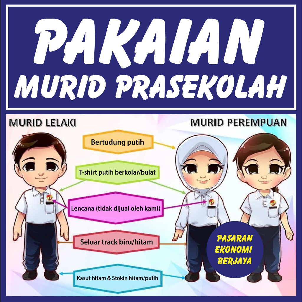 UNIFORM PRA SEKOLAH T-SHIRT PUTIH BUDAK TRACK BOTTOM PRA SEKOLAH PAKAIAN RASMI TADIKA SUKAN KANAK KANAK KIDS SCHOOL