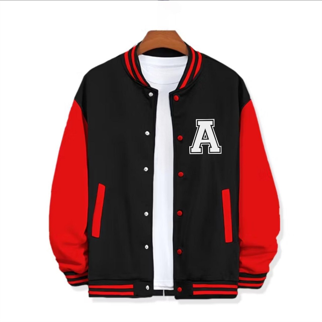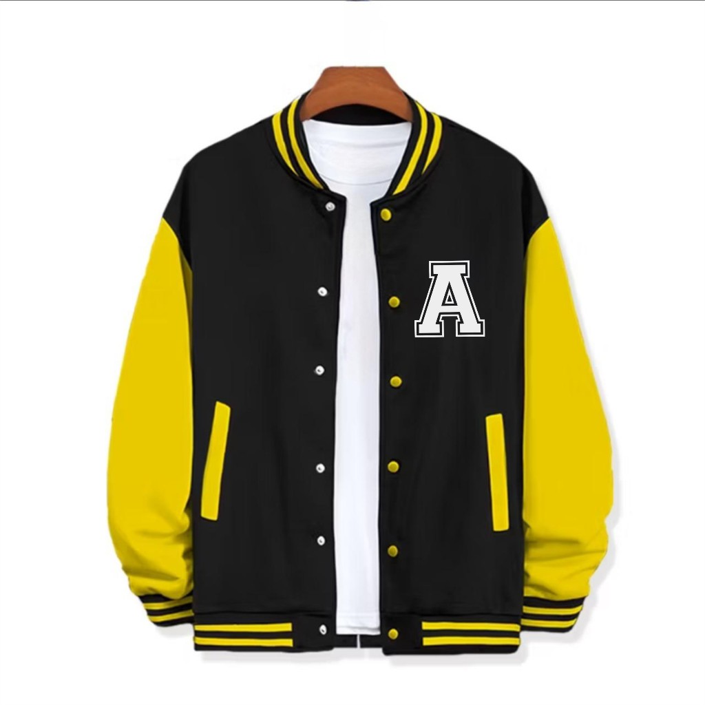 Unisex Button Varsity Baseball Jacket with Initial Font Motif Complete A - Z