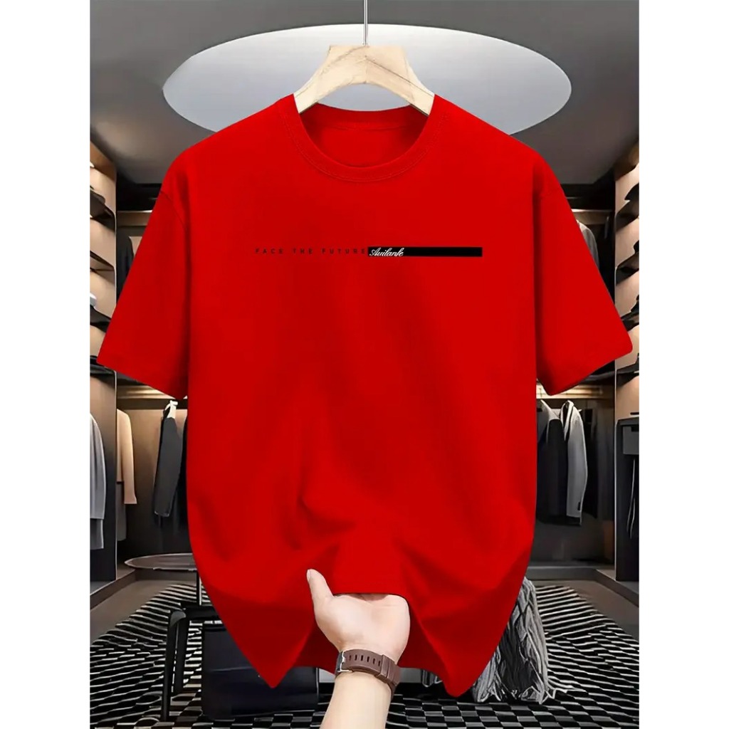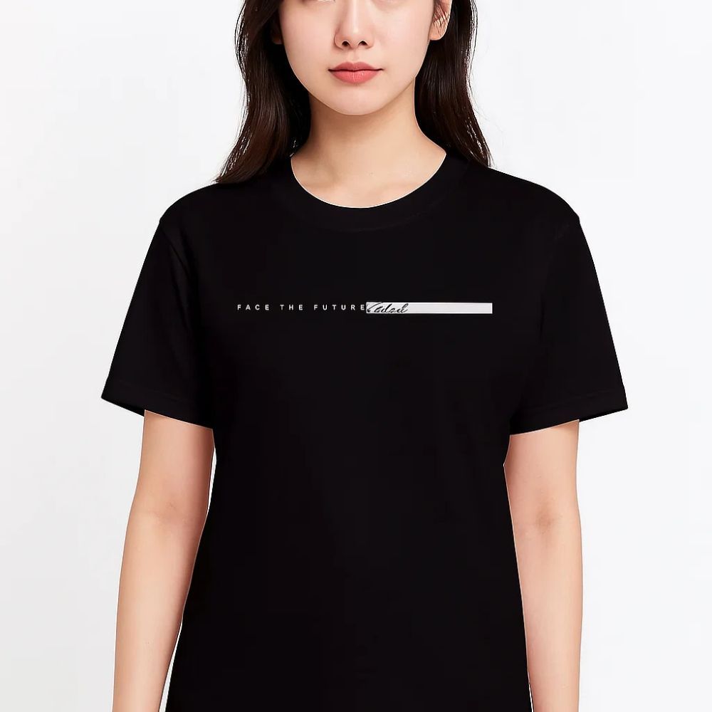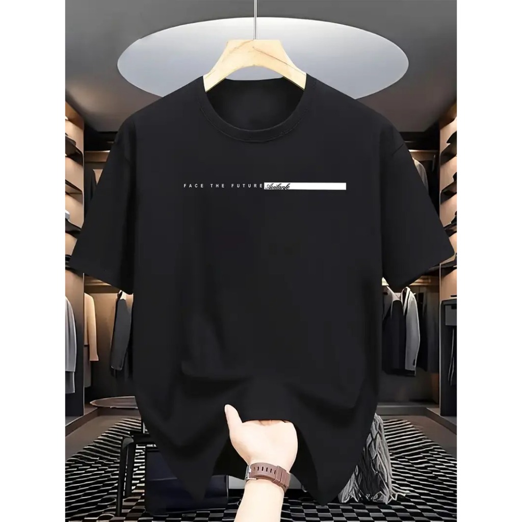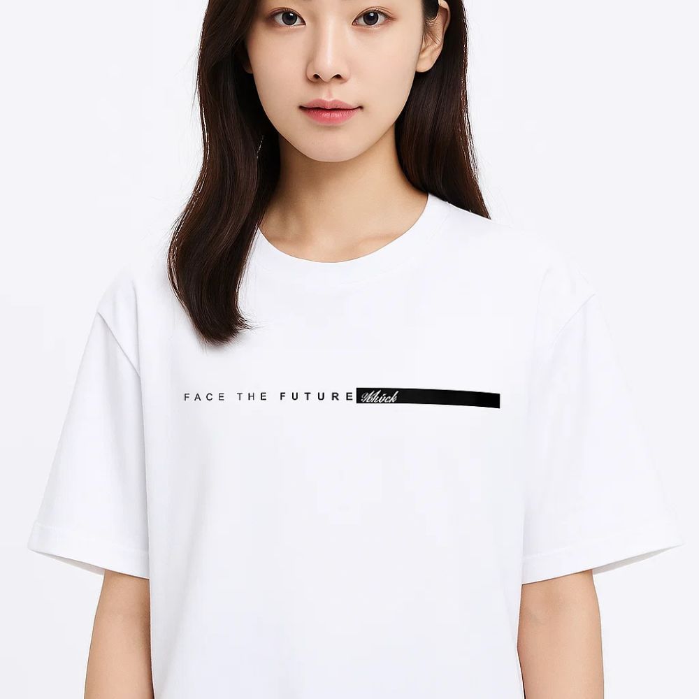 Unisex Casual Crew Neck T-Shirt with "Facing the Future" Print Cotton Fabric Tee XS-2XL