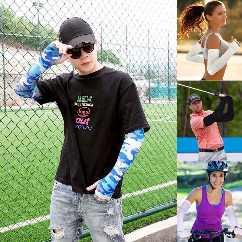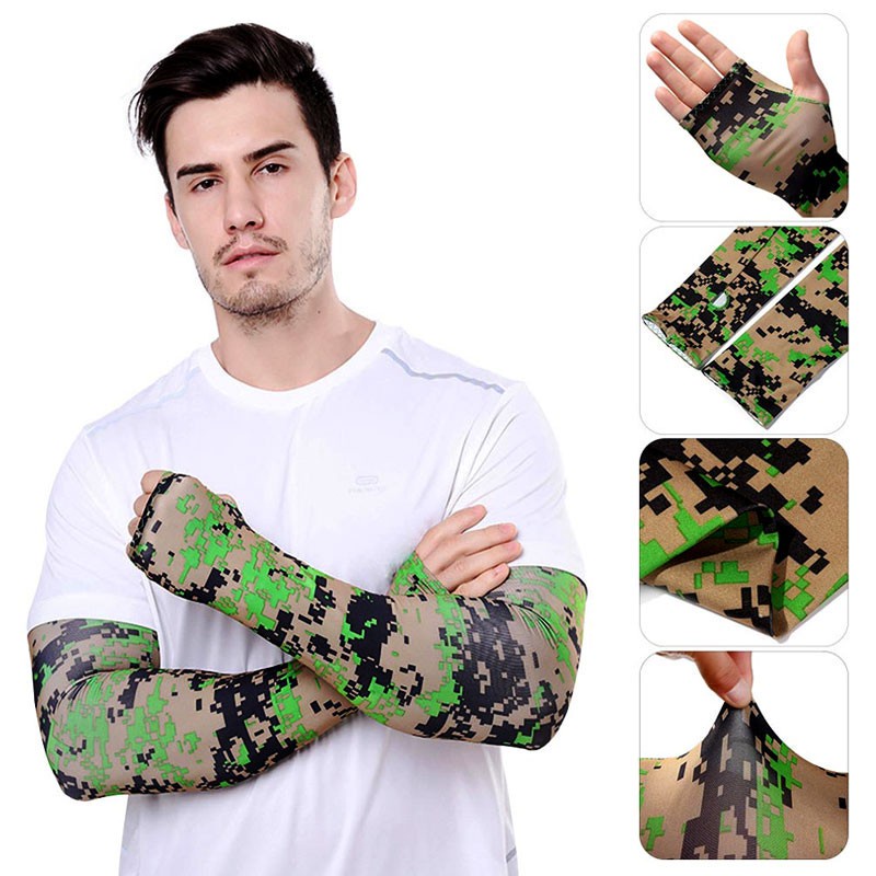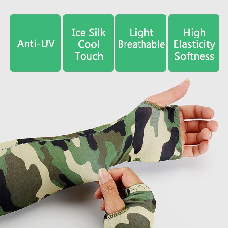 UNISEX UV Proctection Arm Sleeve Camouflage Military Ice Silk Thumb Hole Design Elbow Cover Motorcycle Sarung Lengan