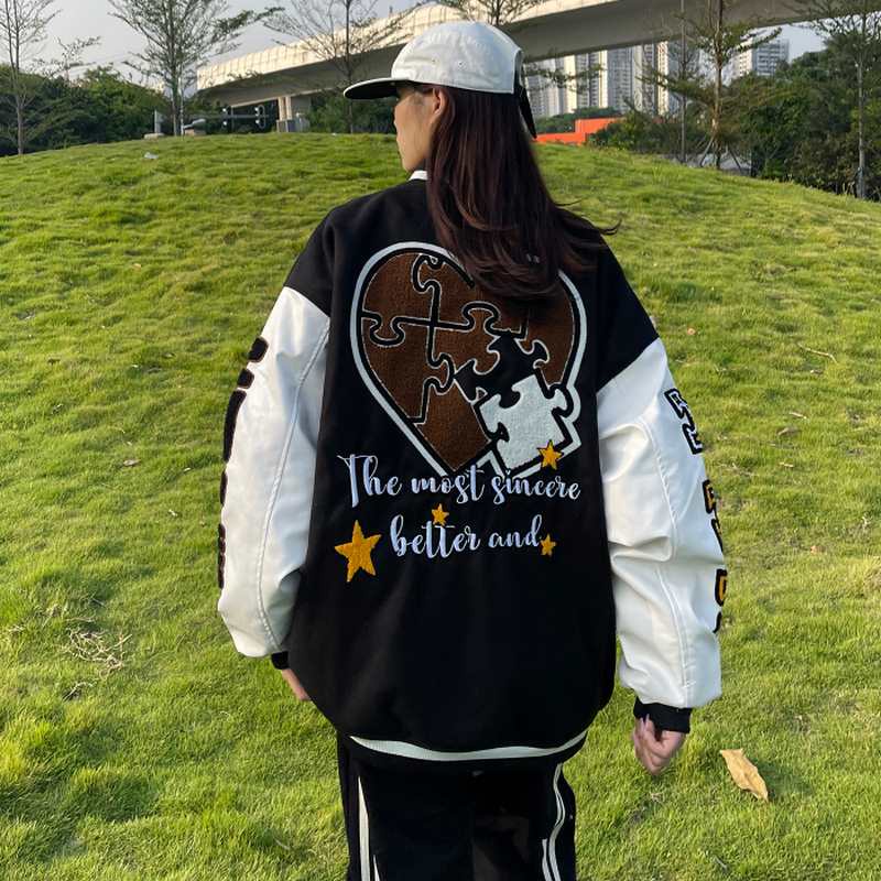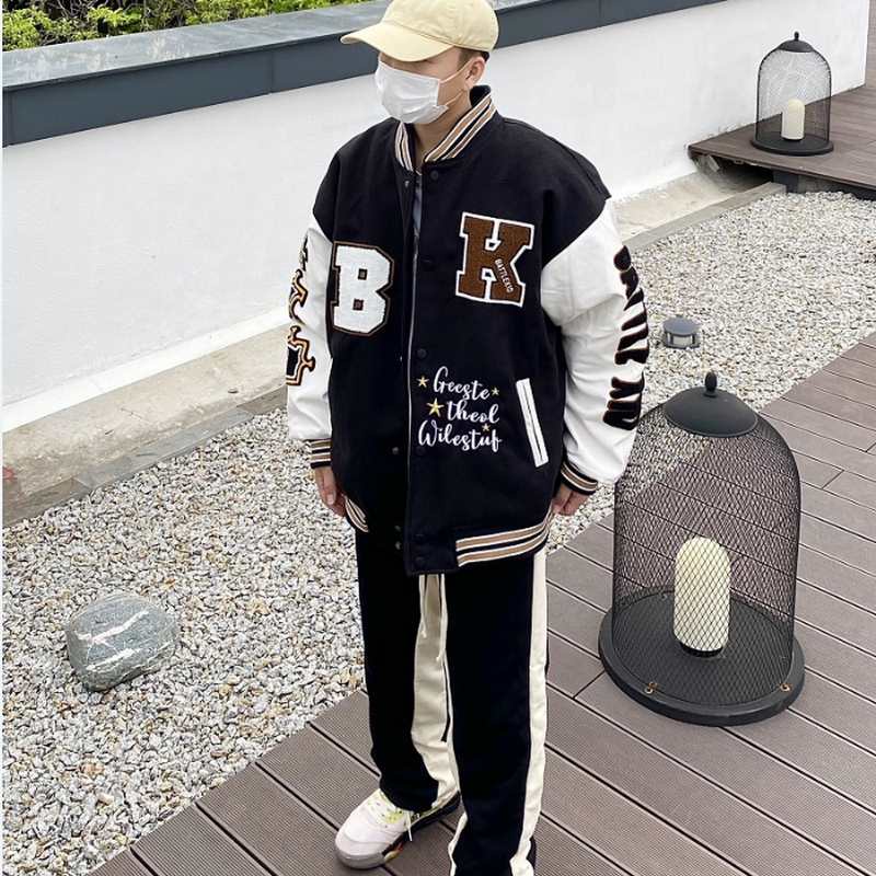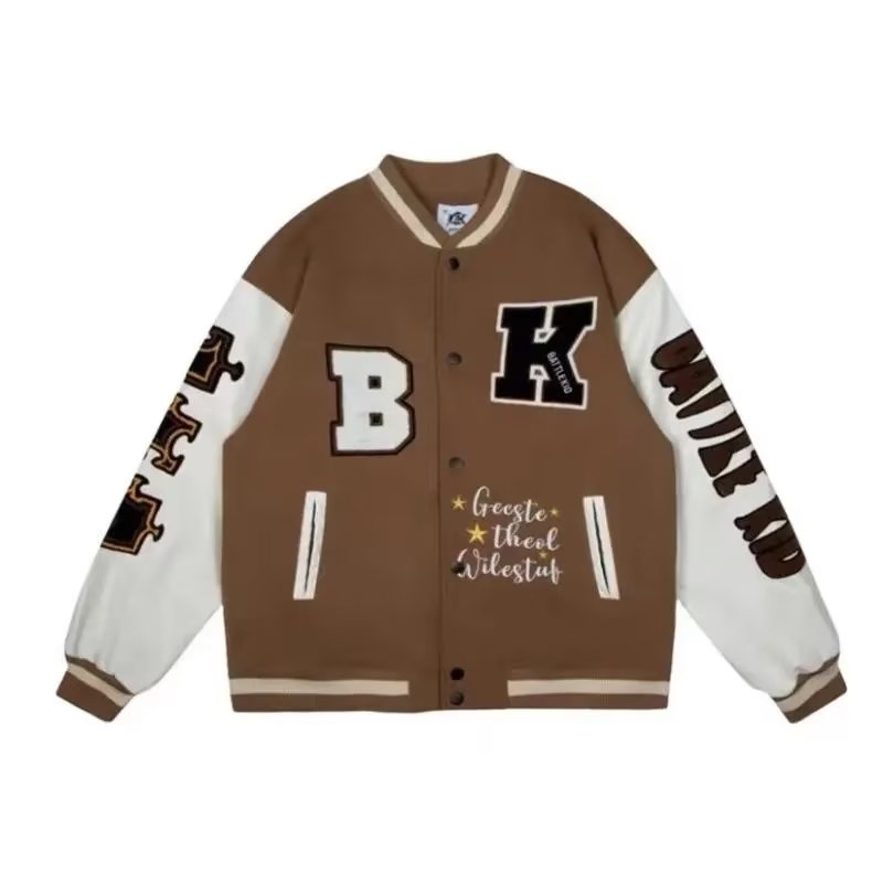Unisex varsity jacket for women and men korean style vintage embroidered baseball jackets oversized fashion street hiphop long seelve coats black brown baju besbol lelaki 棒球服外套