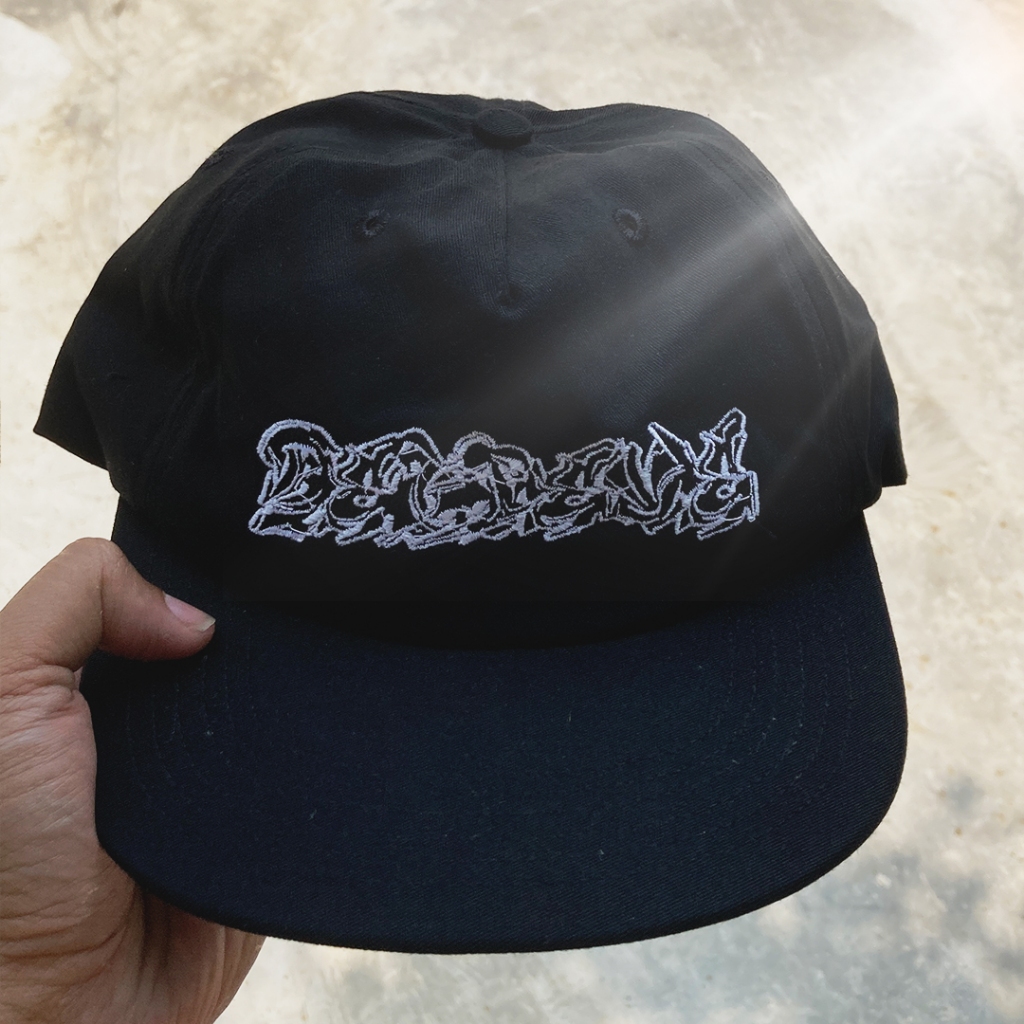 Unknown Services Snapback Hat Black design Believe White