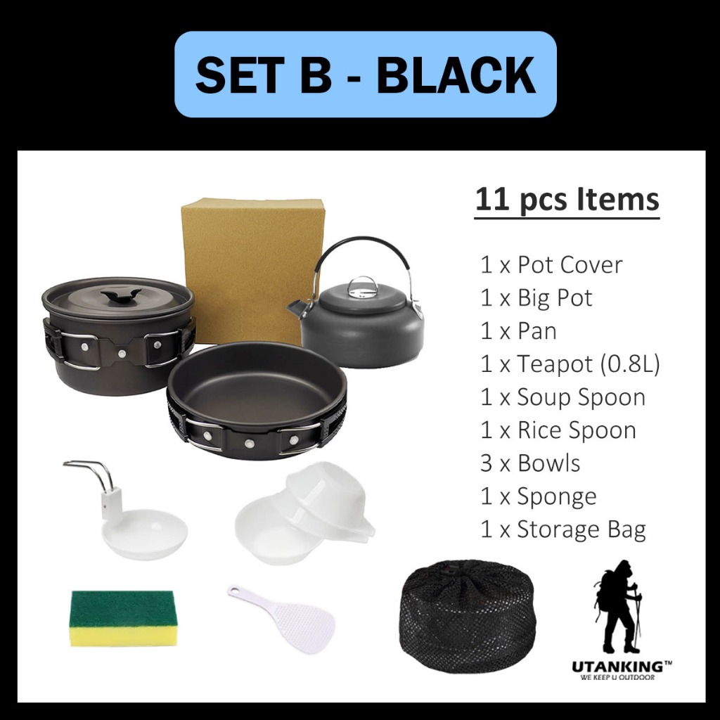UtanKing™ Camping Cookware Kit Camping Cooking Set Tableware Picnic Set Pot Frying Pan Periuk Masak