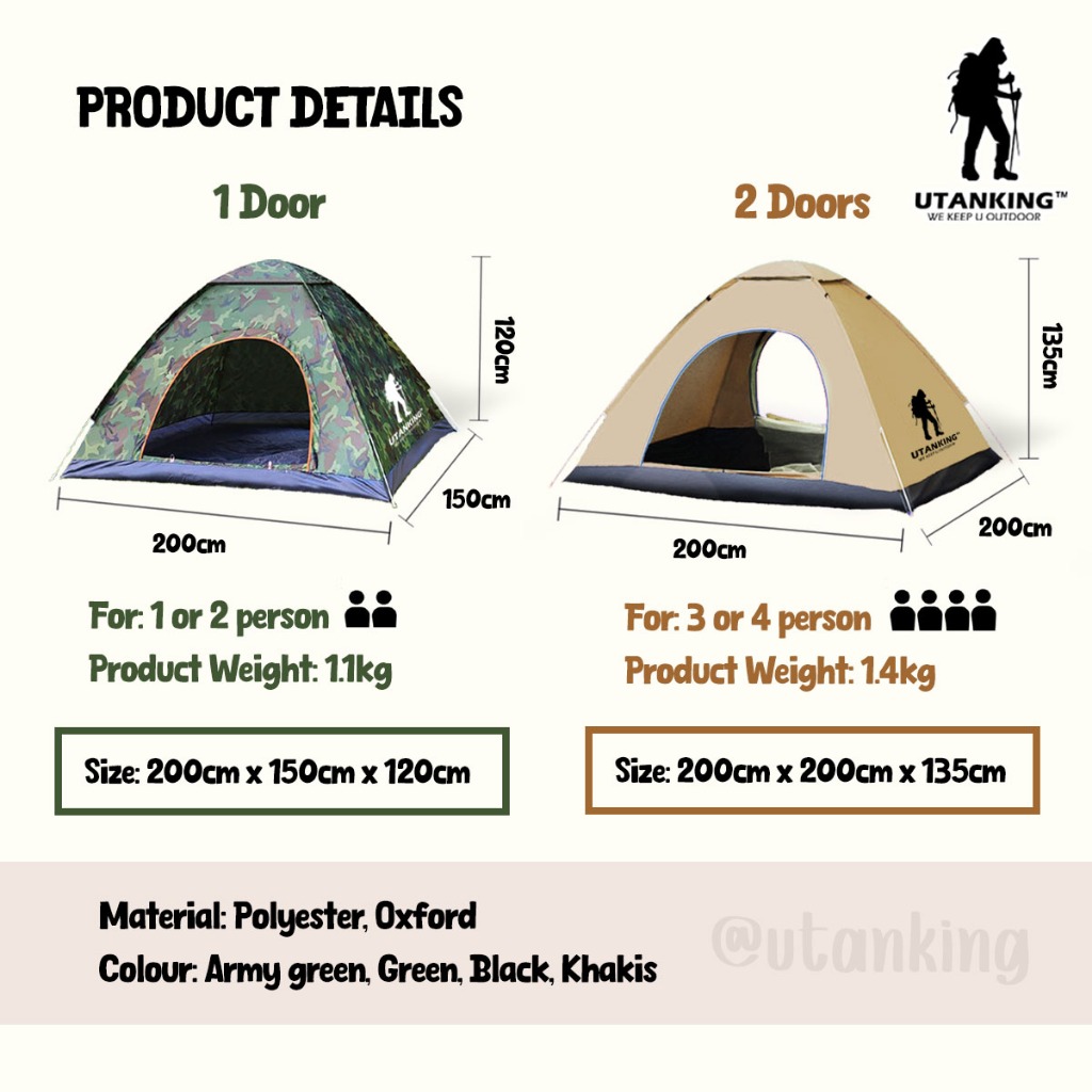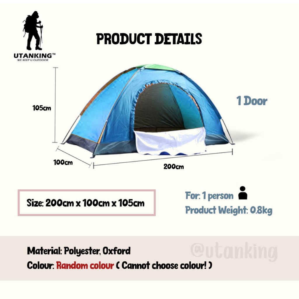 UtanKing Camping Tent Pop Up Tent Hiking Shelter UV Sleeping Tents Khemah