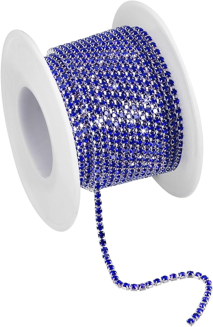 uxcell 11 Yards Crystal Rhinestone Chain, 2mm Sew on Close Claw Chain Trim for DIY Jewelry, Clothing, Bags, Shoe Decoration, Silver Bottom, Sapphire