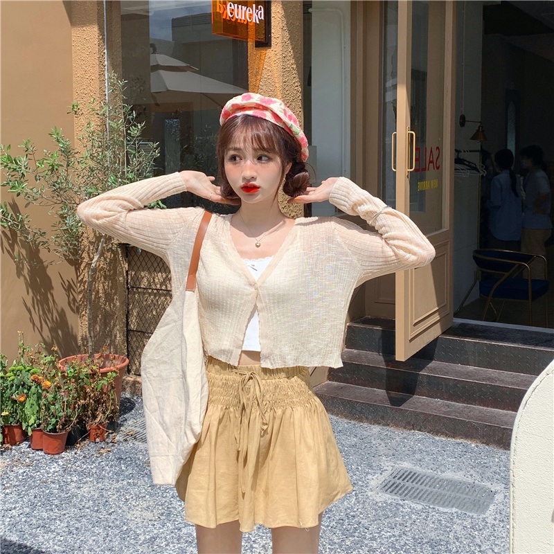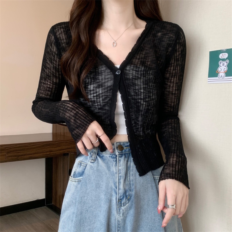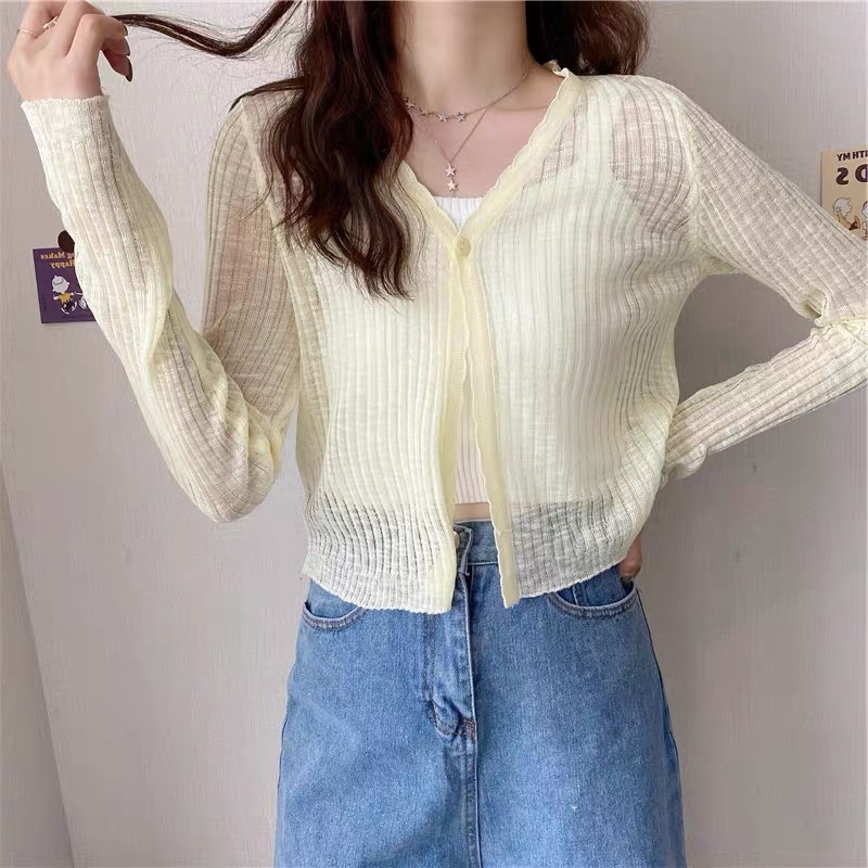 V-Neck Knitted Women Cardigan Long Sleeve Sun Protection Thin Outerwear V领薄款针织开衫长袖防晒外套
