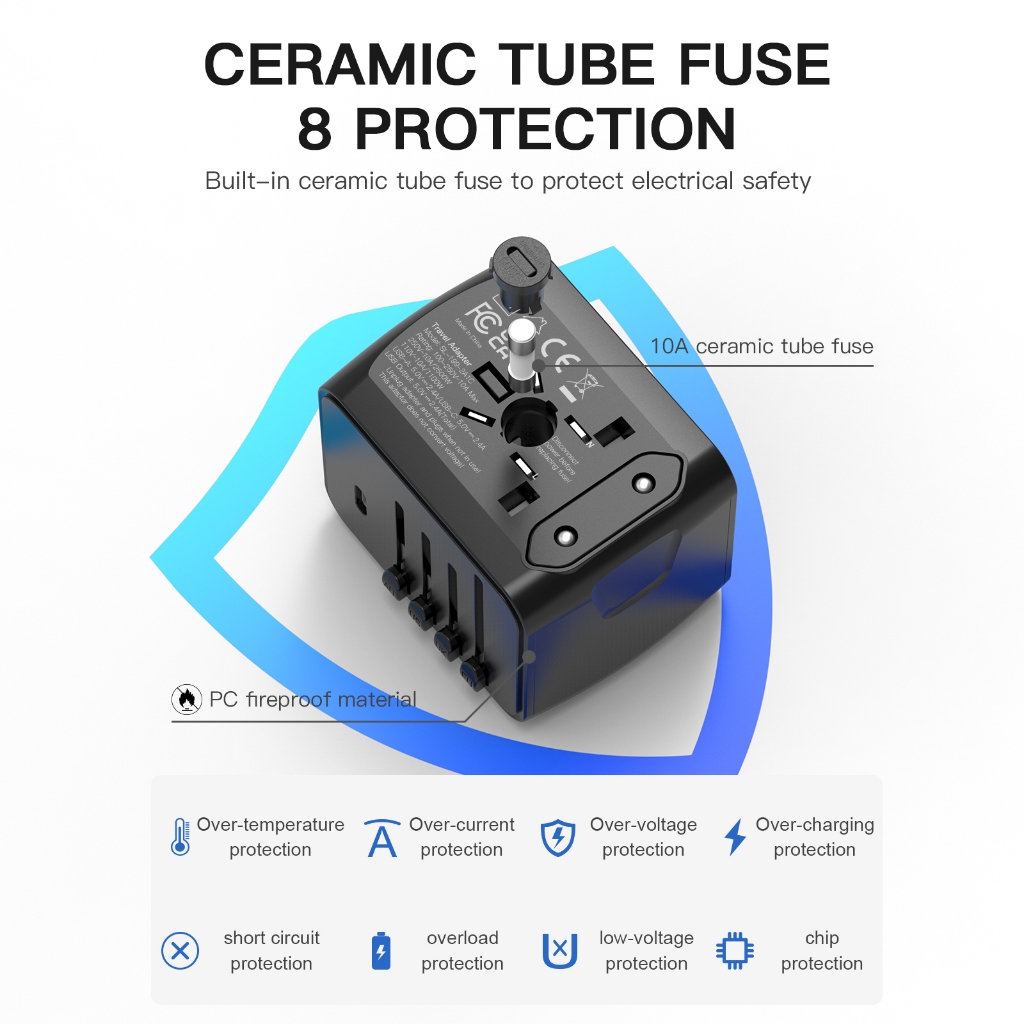 V380 Pro 2.4A 2A1C US EU UK AUS Plug USB C USB A 3Ports GaN Fast Charger for iPhone 16 15 Pro Macbook Air iPad Samsung