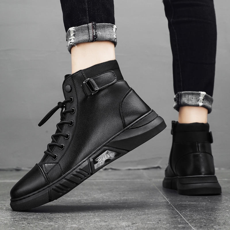 Venous 2025 Kasut Kulit Lelaki Black Leather Shoes for Men Middle Top Retro Original Casual Men's Shoes Fashion Boot 皮鞋男