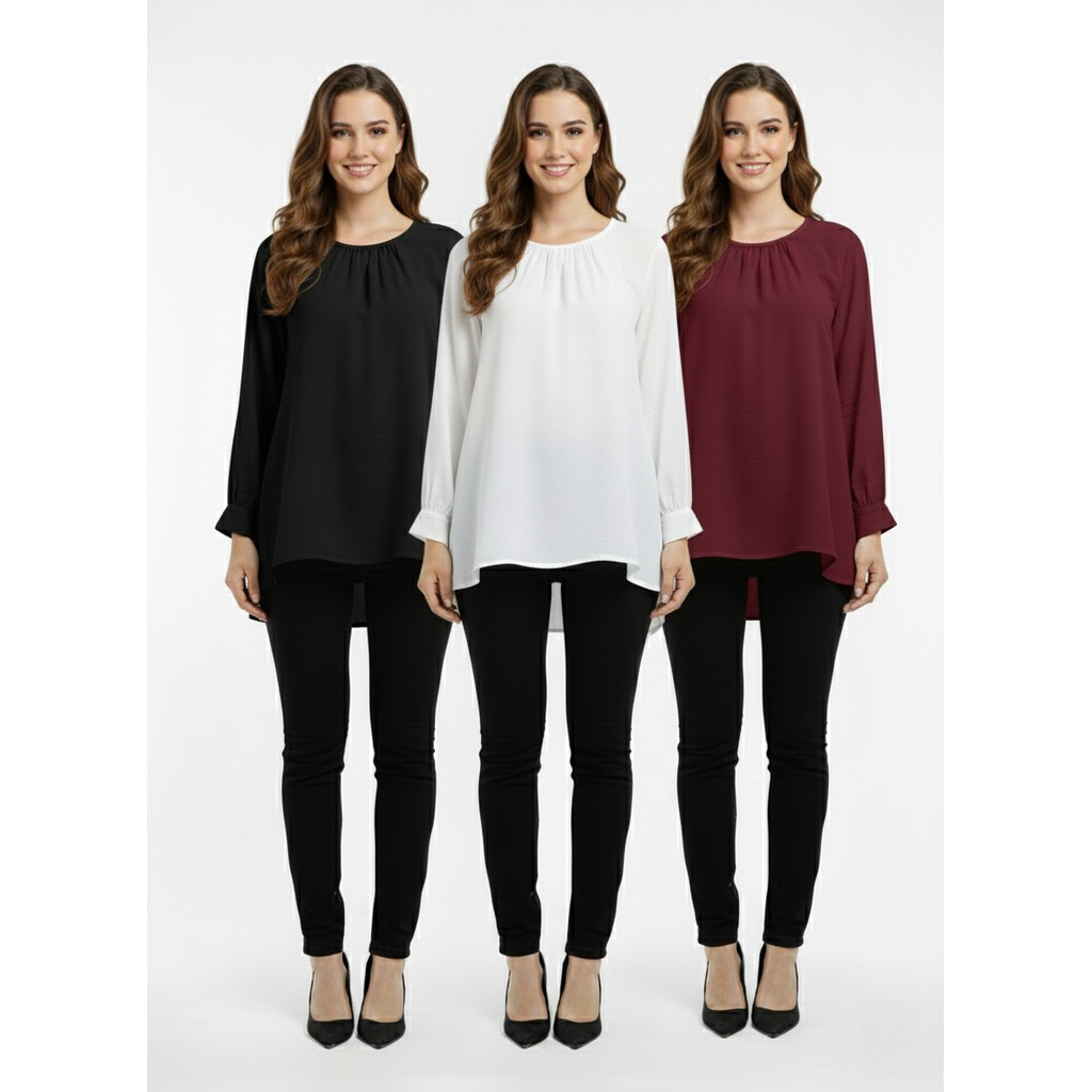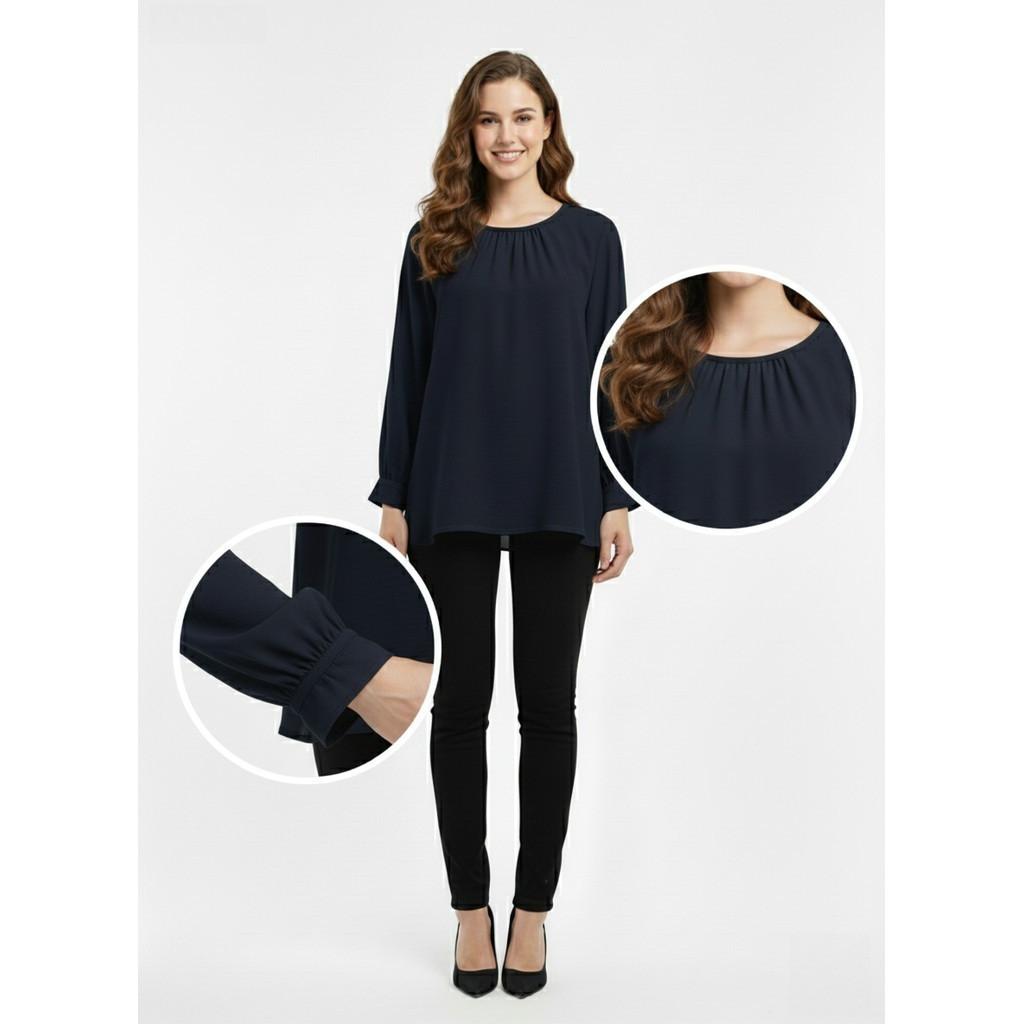 Victoria Blouse Casual Outfit Wanita Elegant Plus Size Long Sleeve with Button Fashion Wanita