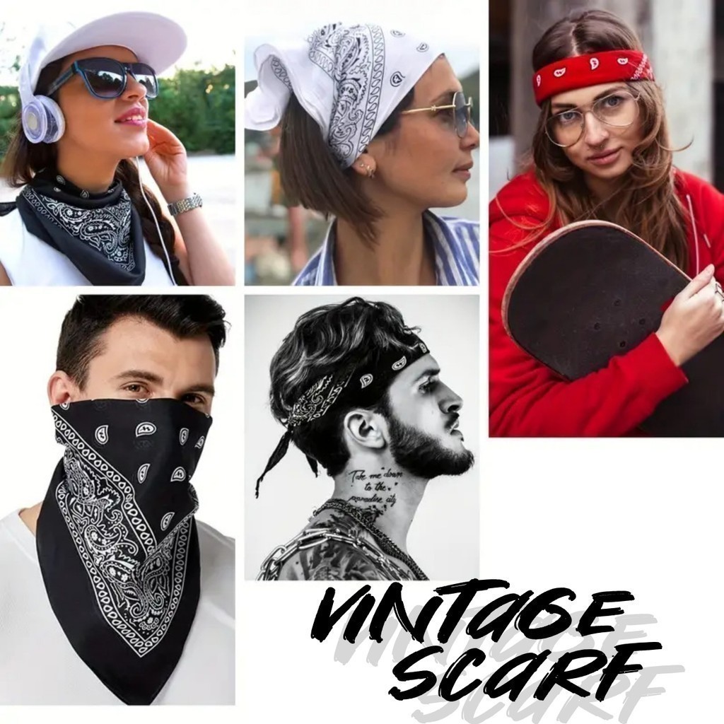 Vintage Square Scarf Unisex Hip Hop Paisley Classic Cotton Scarves Fashion Headband (55cm) Versatile Decorative Scarf