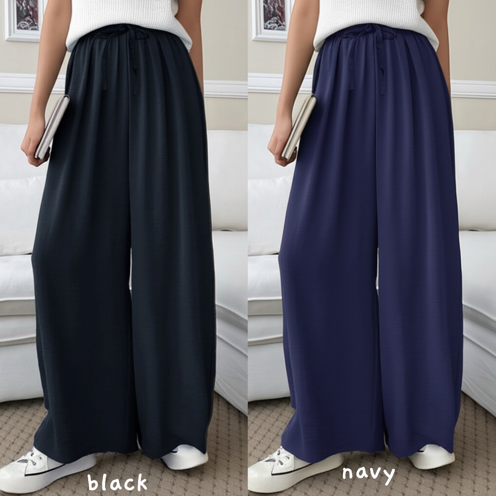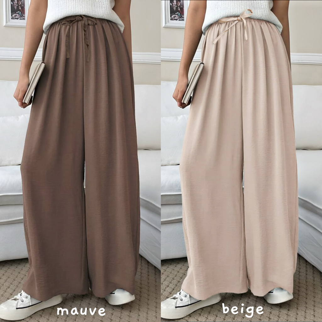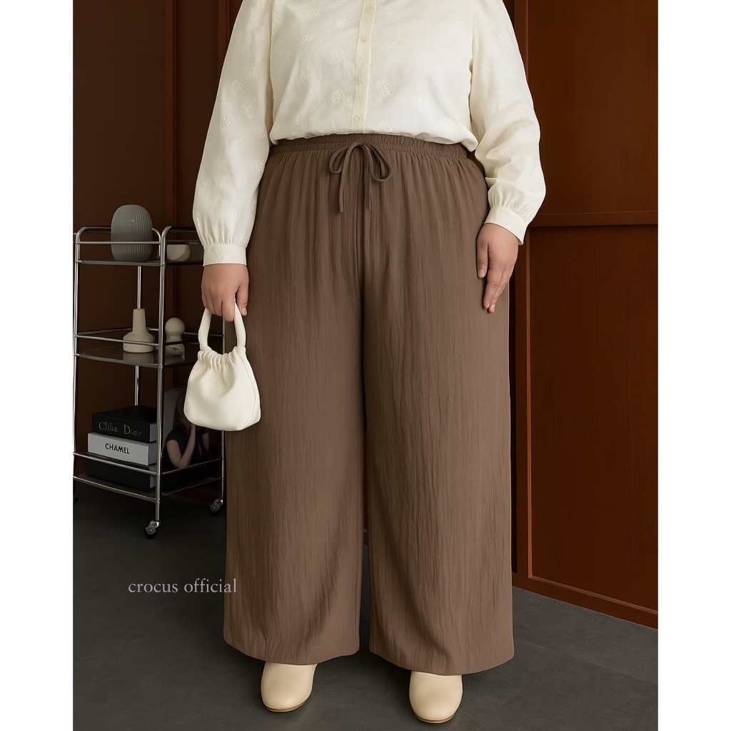 VIOLET Highwaist Loose Pants Crinkle Airflow Culottes 40-90kg Jumbo Oversize Pants with Cringkle Straps