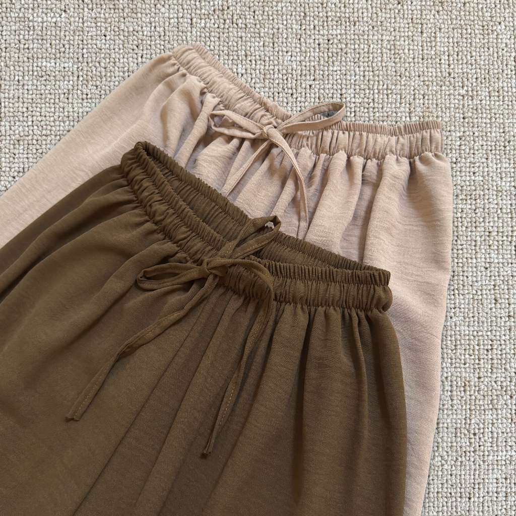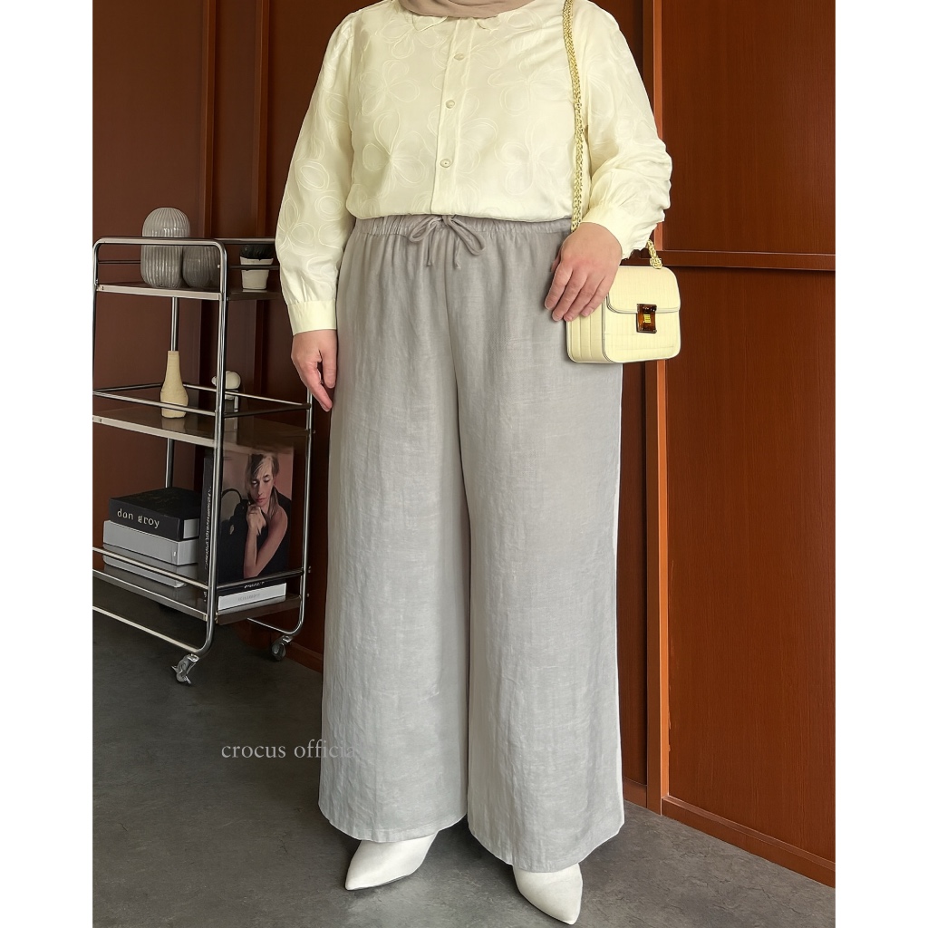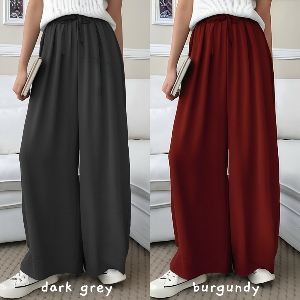 VIOLET Highwaist Loose Pants Crinkle Airflow Culottes 40-90kg Jumbo Oversize Pants with Cringkle Straps