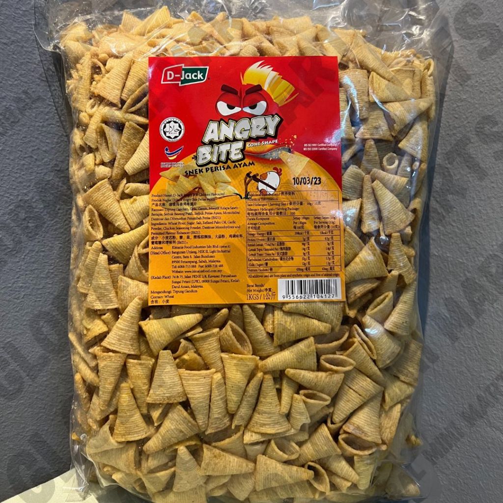 Viral D-Jack Angry Bite Snack Snek BBQ / Cheese / Chicken Flavor 1KG (Cone Shape Snacks) |Halal Certified| Hot Selling