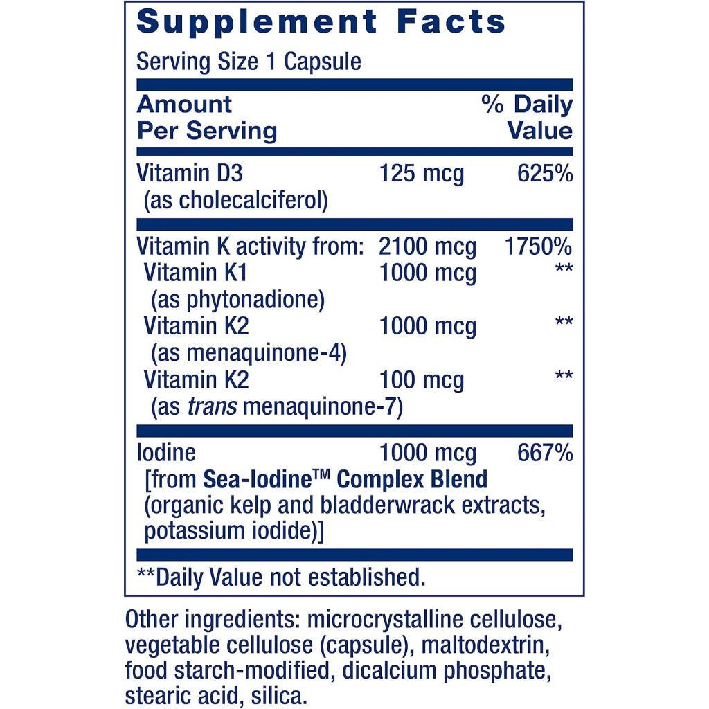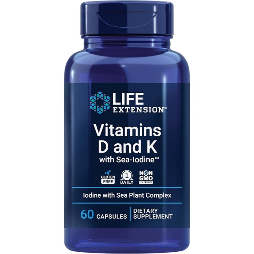 Vitamins D and K with Sea-Iodine, 60 capsules Life Extension: Exp 05/27 ,100% Authentic