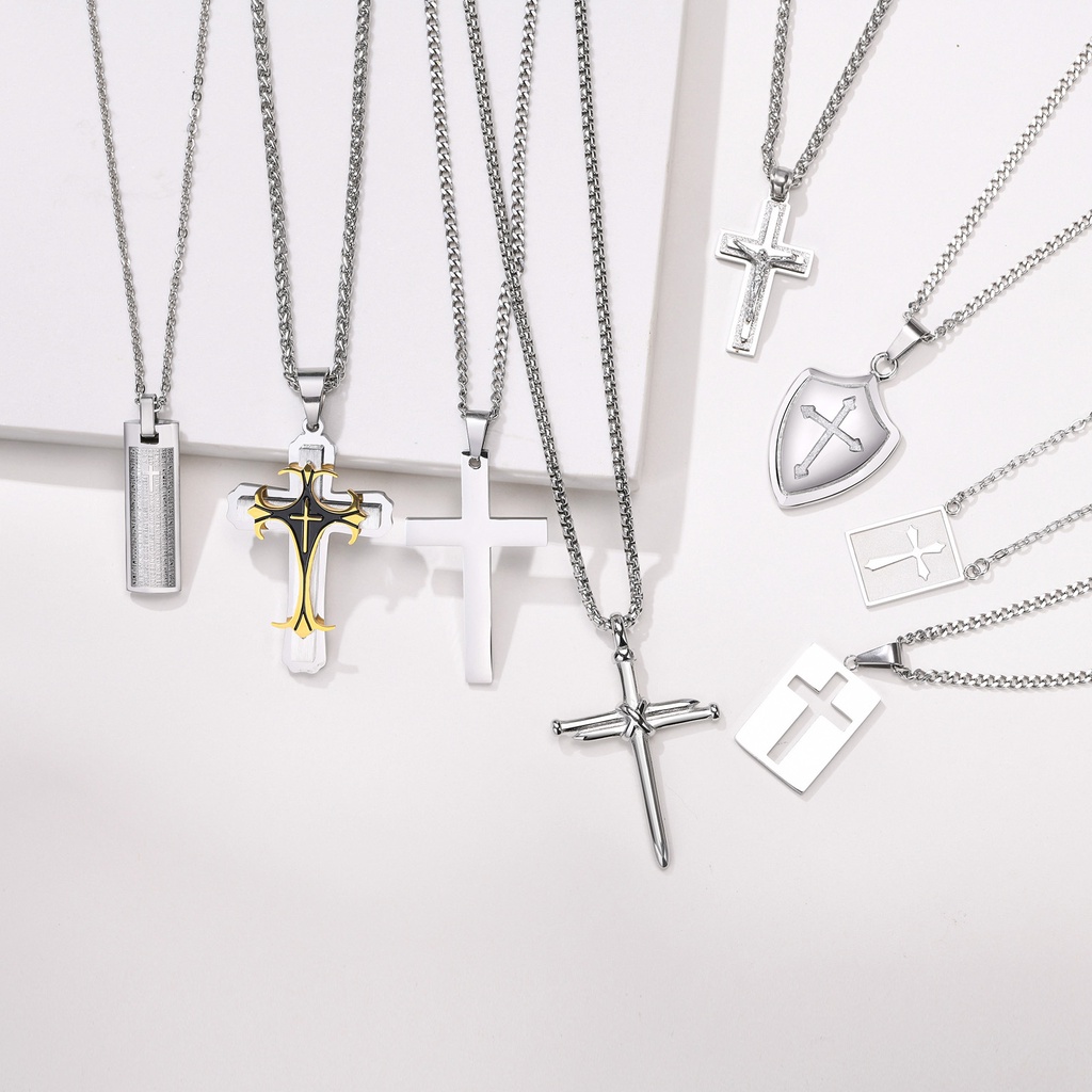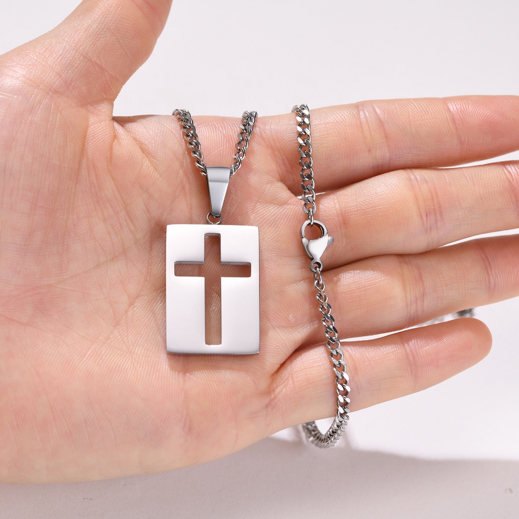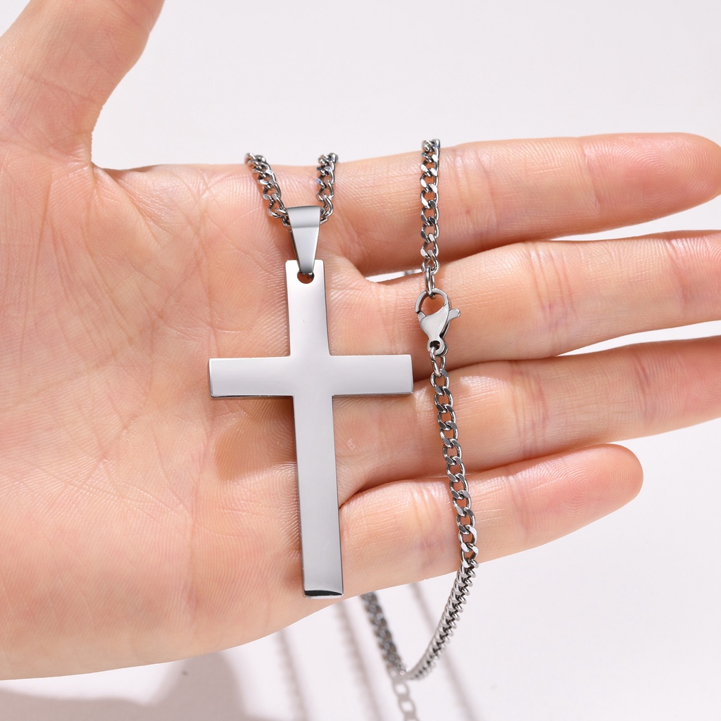 Vnox Cross Stainless Steel Plain Cross Pendant Necklace (24”)