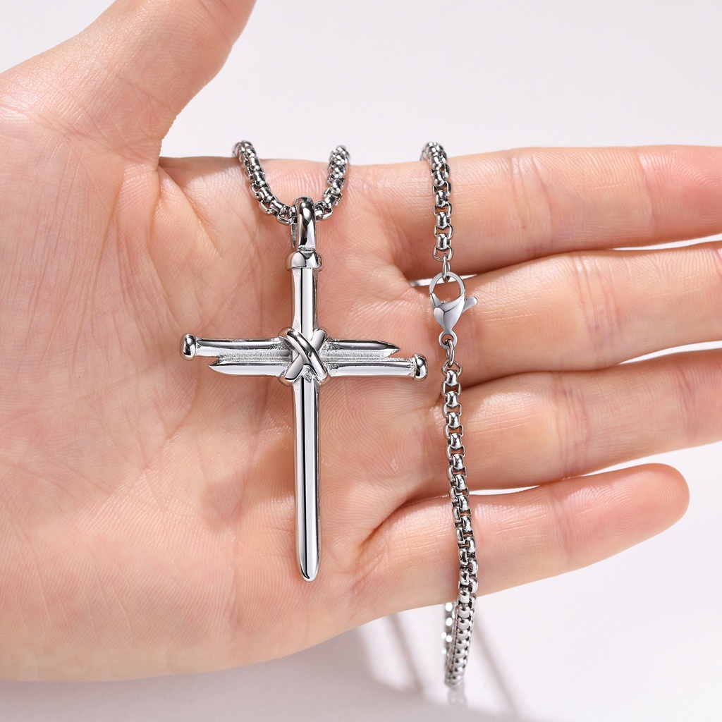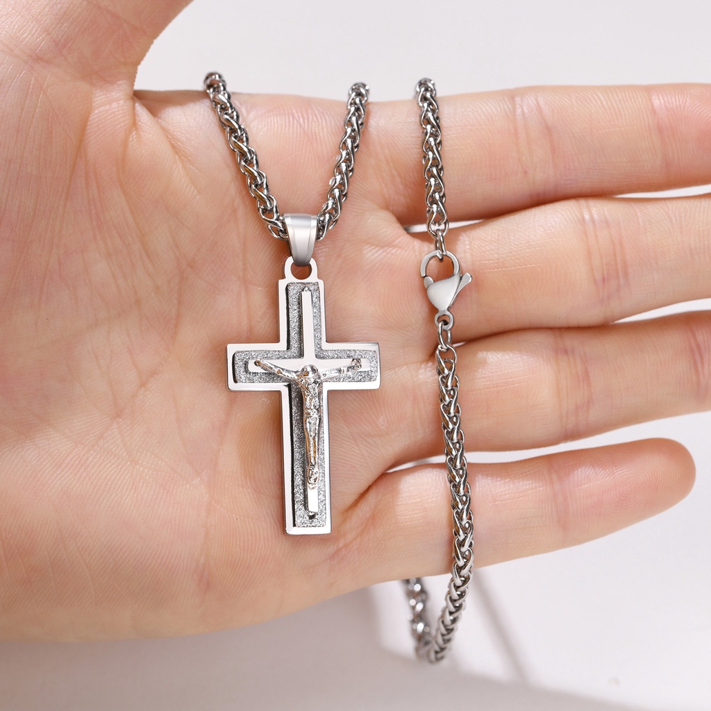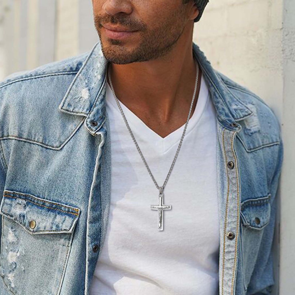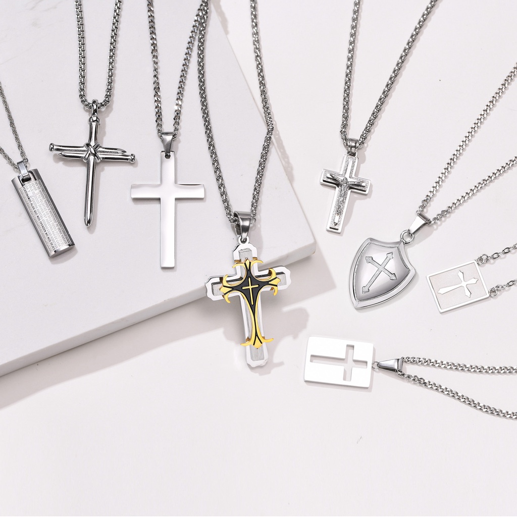 Vnox Cross Stainless Steel Plain Cross Pendant Necklace (24”)