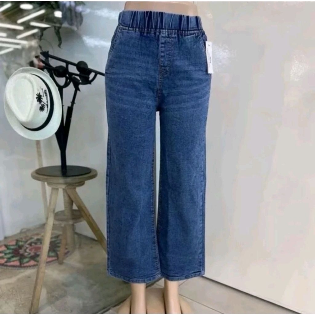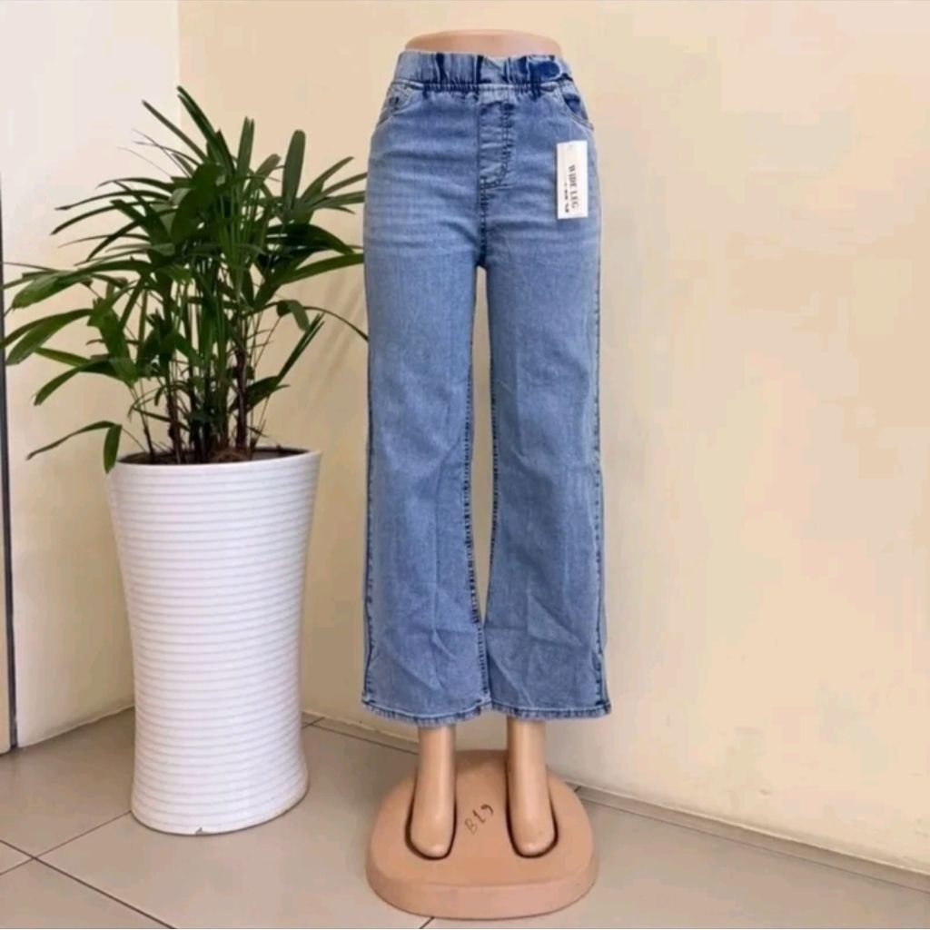 Wade Leg Jeggings baggy Jeans Wanita Wide Leg kain Super Stretchable Memeri Stock Sedia Size 26 Hingga 38