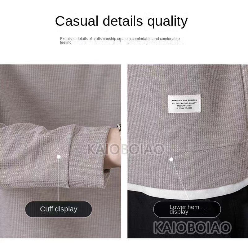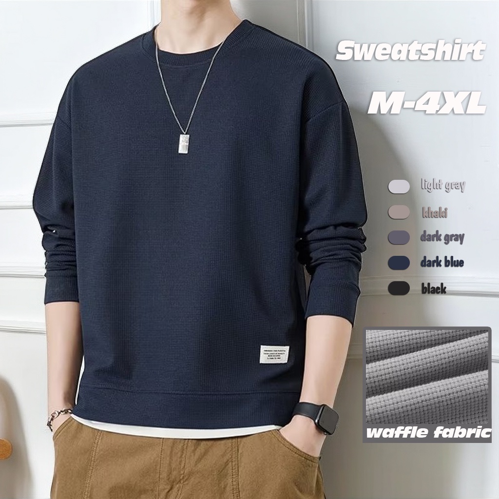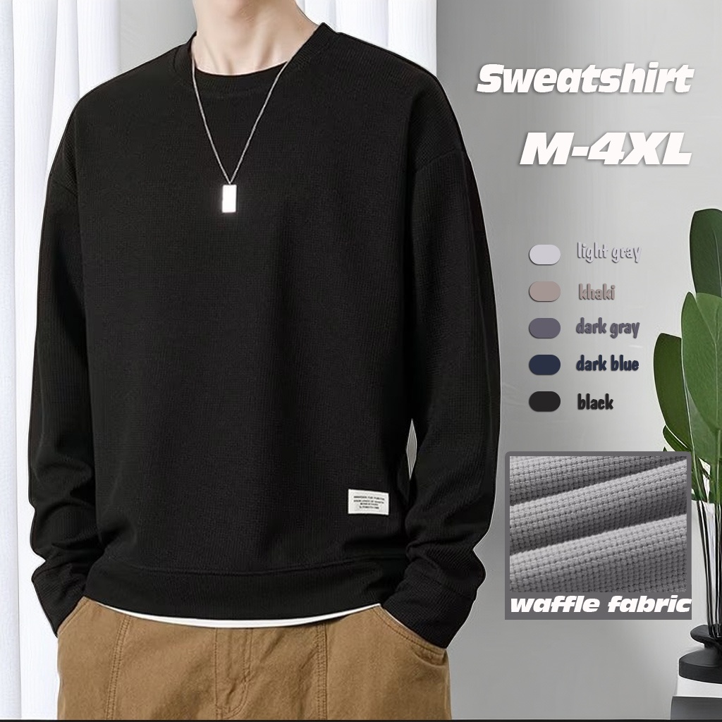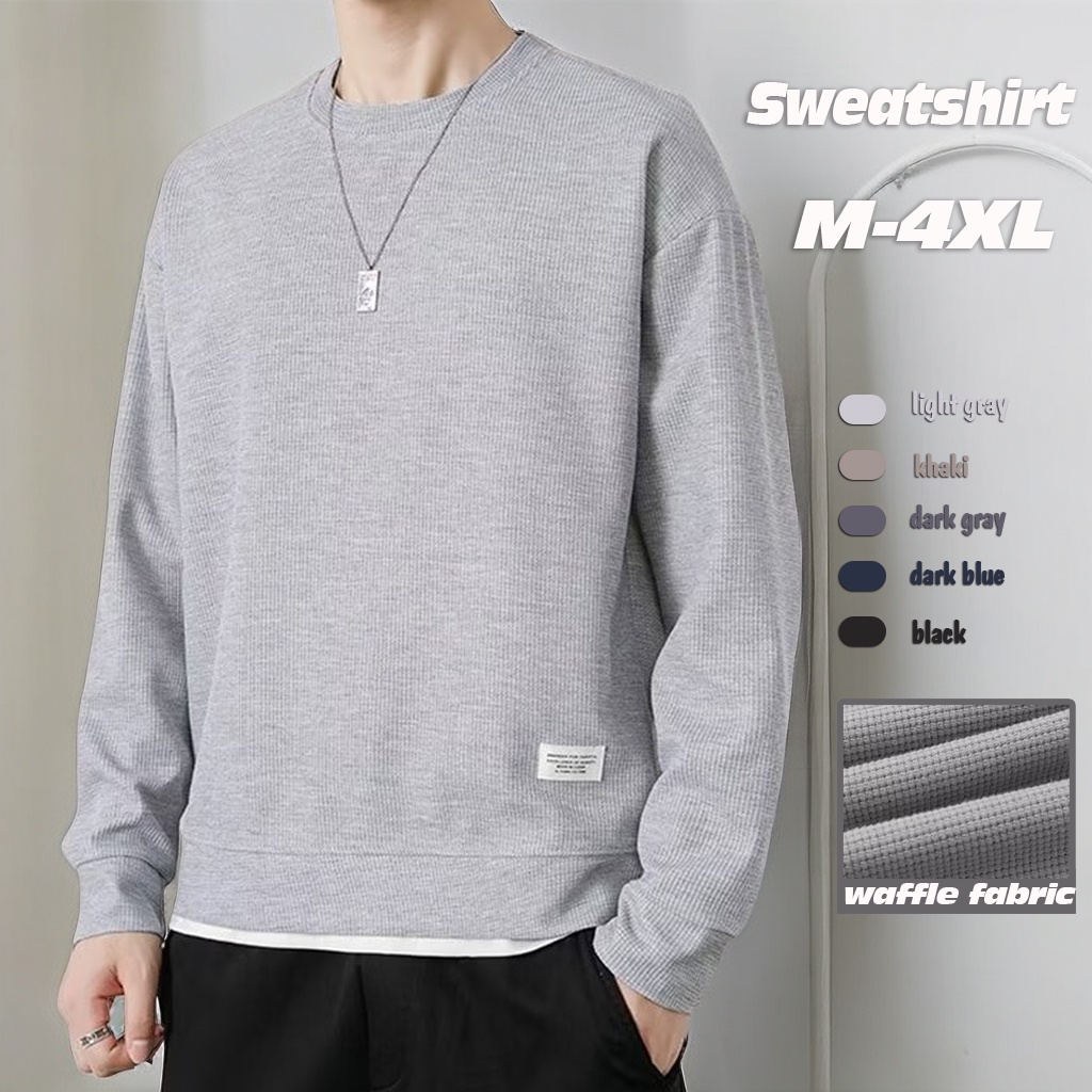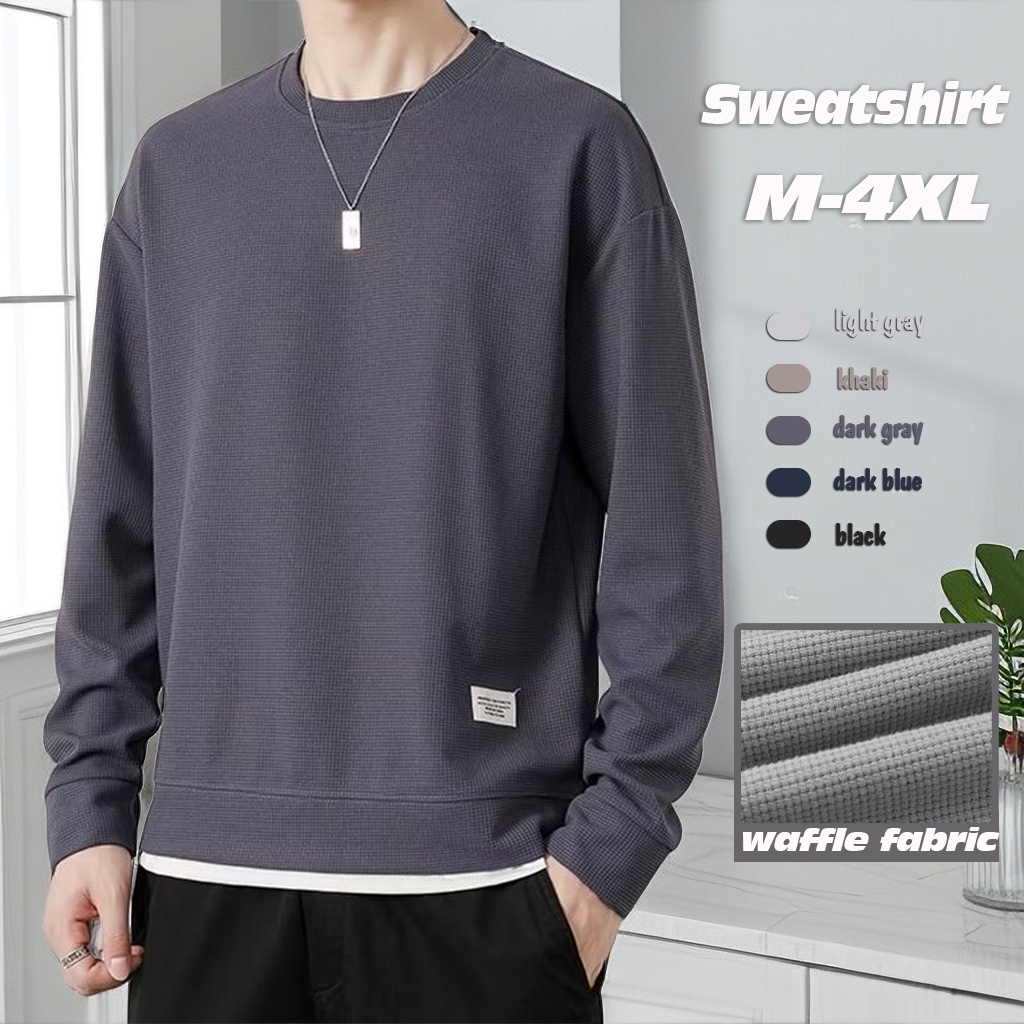 Waffle Sweatshirt Men Long Sleeve Waffle Sweater Men Oversized Round Neck Plain Sweat Shirt Men Long Sleeve T Shirt