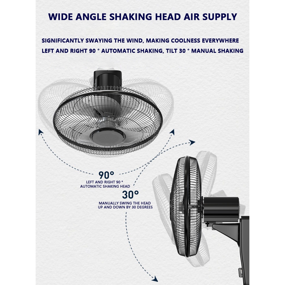 Wall-Mounted Fan 5 Blades EnergySaving Imported Motor Mute Adjustment Shaking Stand Fan