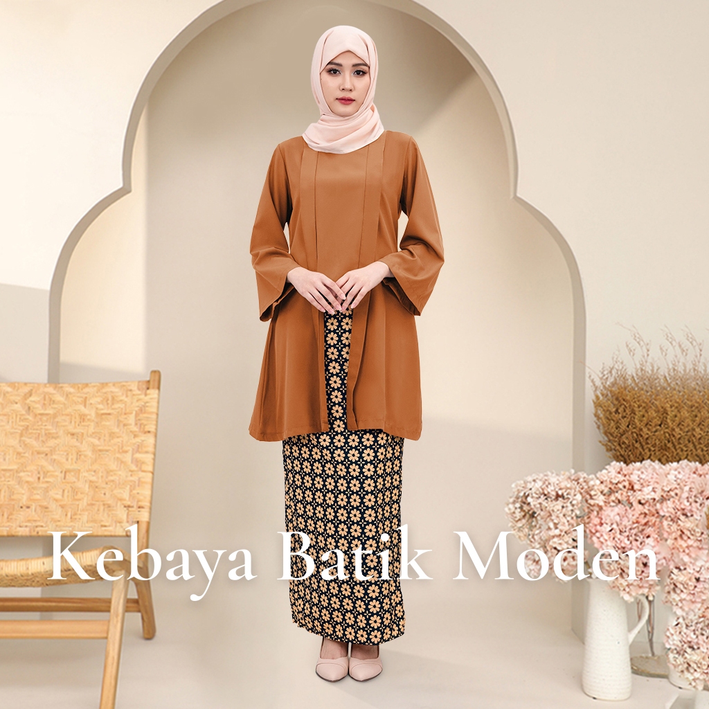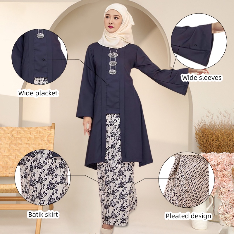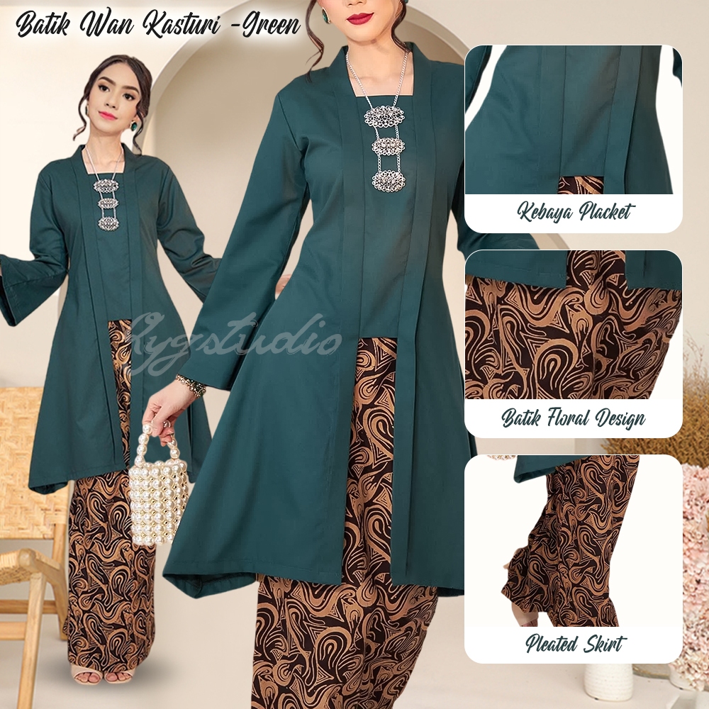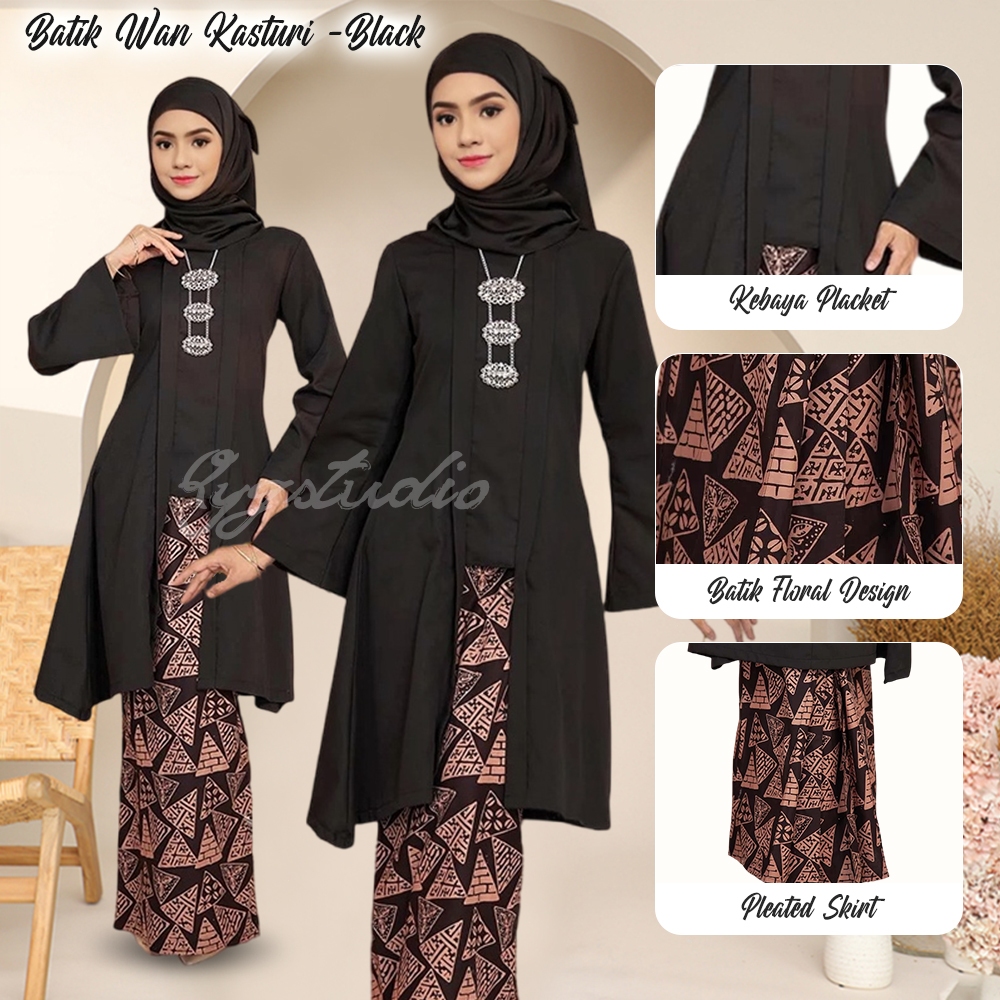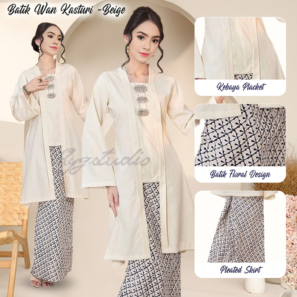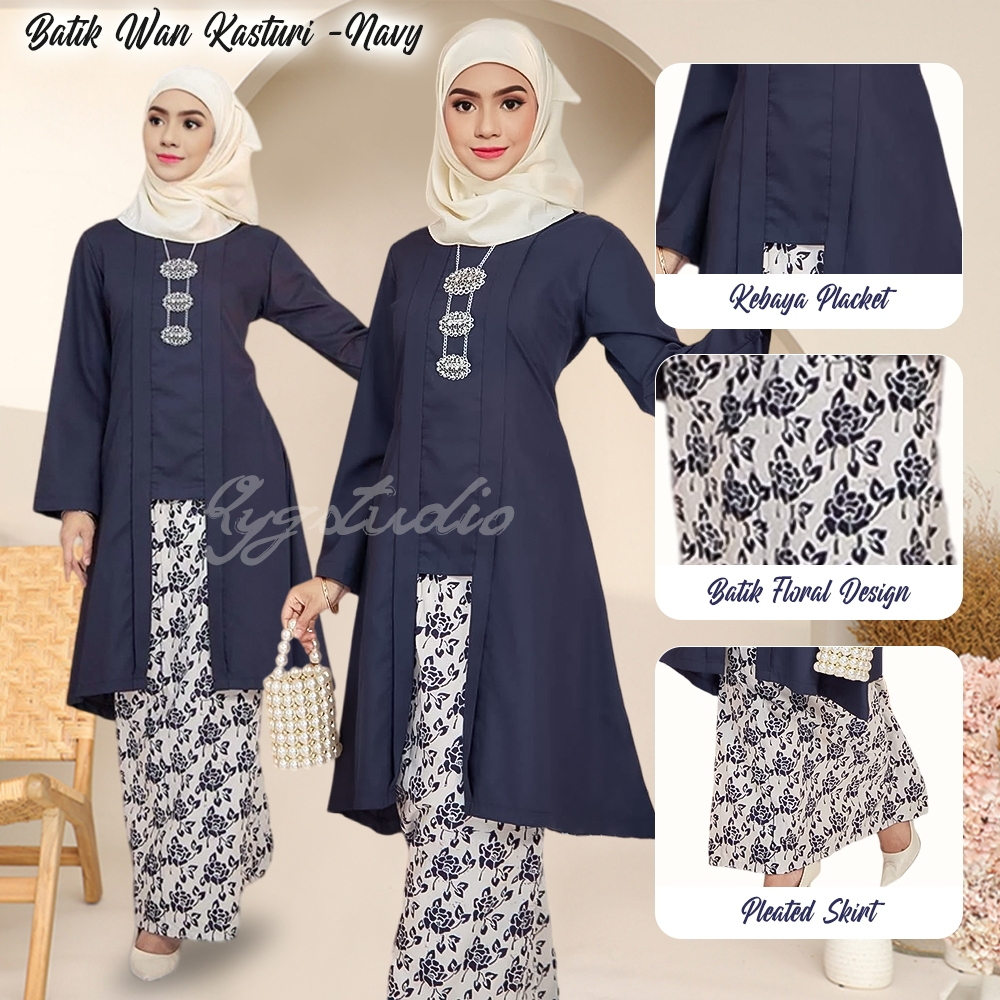 Wan Kasturi batik Baju Kebarung Kebaya Baju Kurung Moden Longgar Kebarung Labuh Ironless Kain Lipat Batik Baju Raya 2025