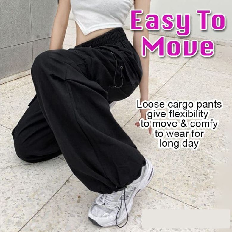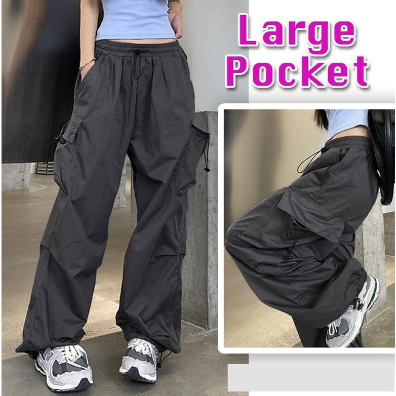 Wanita Seluar Kasual Streetwear Cargo Pants Seluar baggy wanita Lebar Kaki Lurus Seluar Panjang Women Casual pant