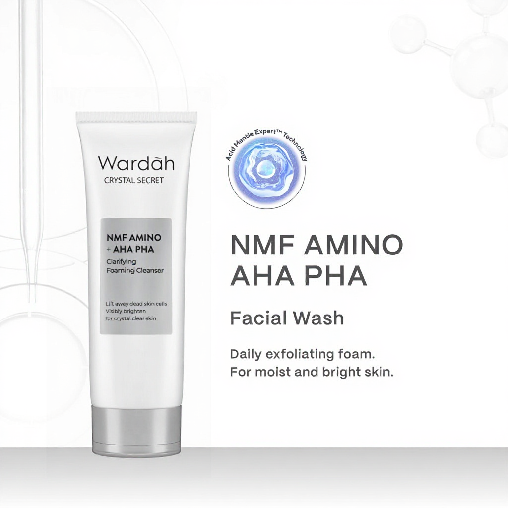 Wardah Crystal Secret NMF Amino + AHA PHA Clarifying Foaming Cleanser 100 mL - Gentle Skin Face Wash