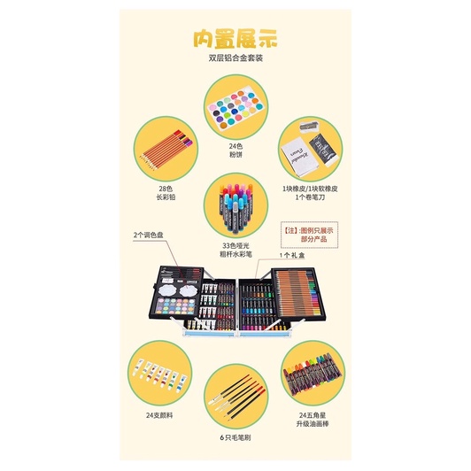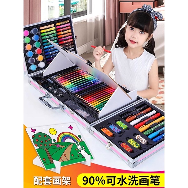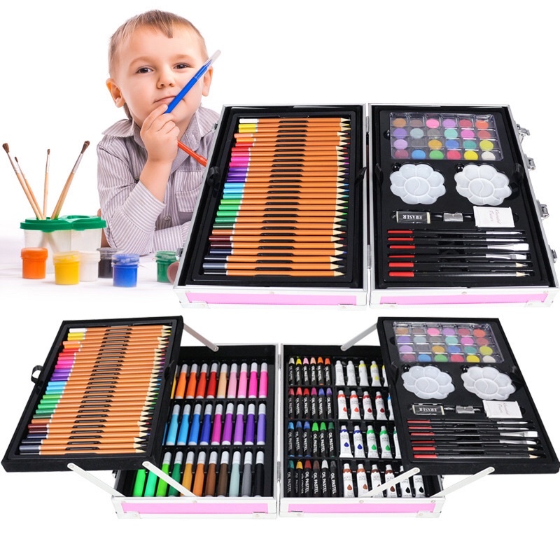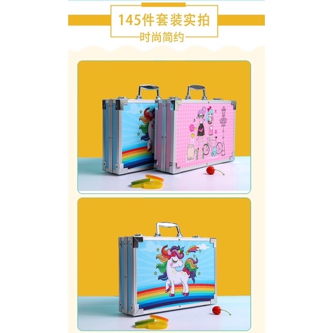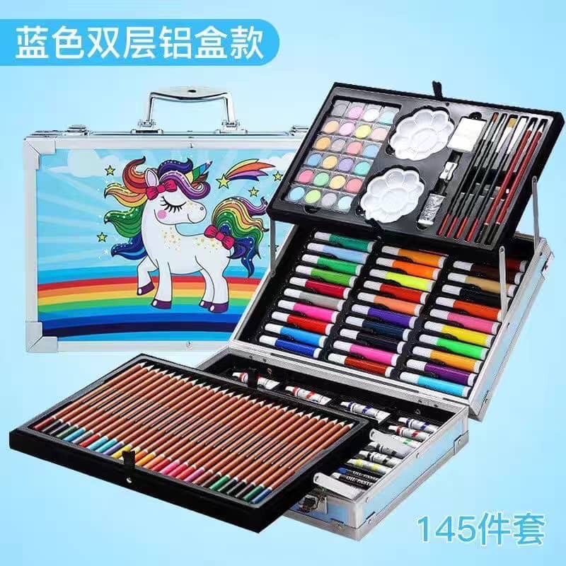 Warna lukis Unicorn Design 145pcs Art set Aluminum Case Painting Pen Stationery Set Watercolor Pens Crayon Pencil Drawin
