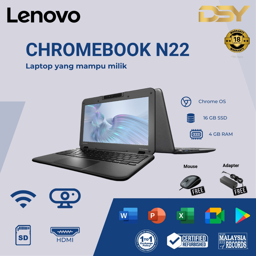 (Warranty 18 Month) LENOVO N22 LAPTOP CHROMEBOOK |16 GB SSD| STUDY | OFFICE |4GB RAM | 16 GB SSD | Bluetooth | HDMI