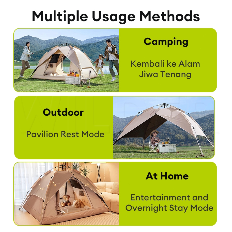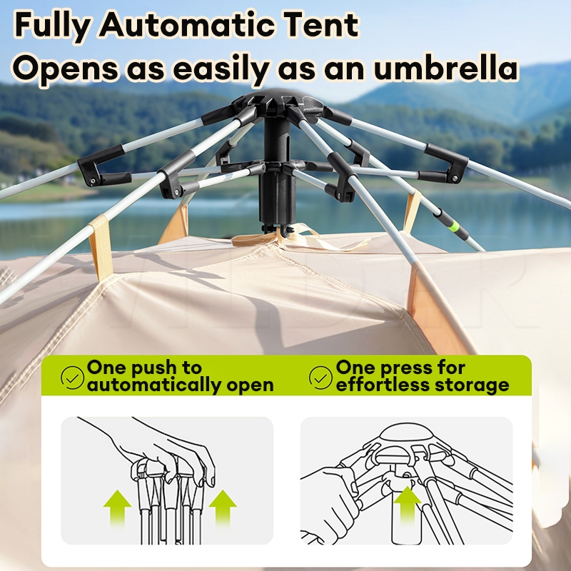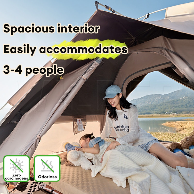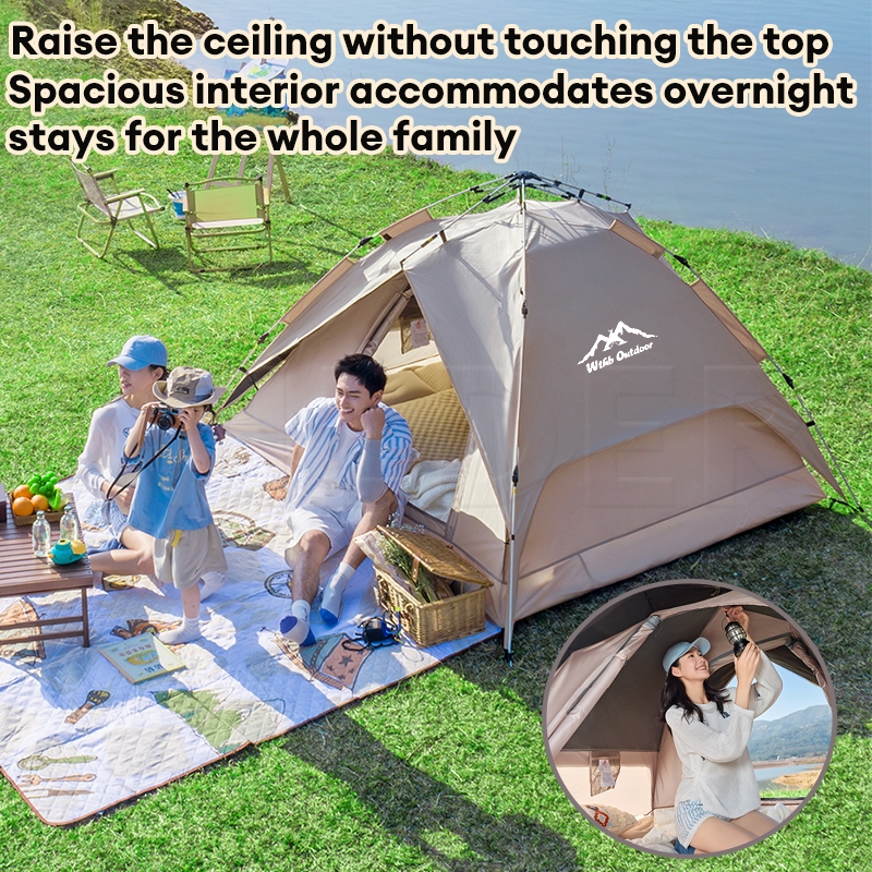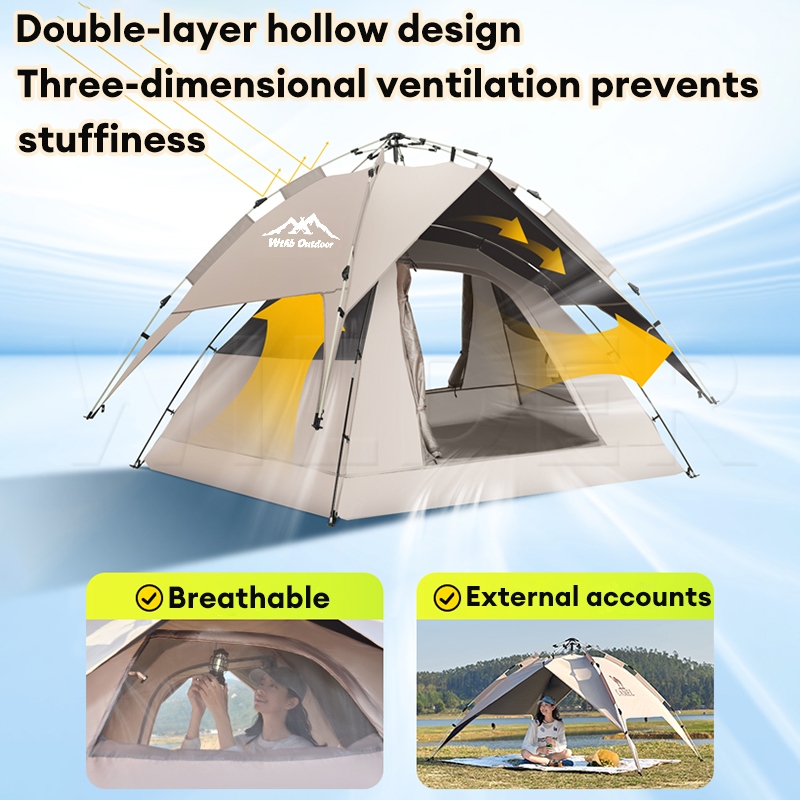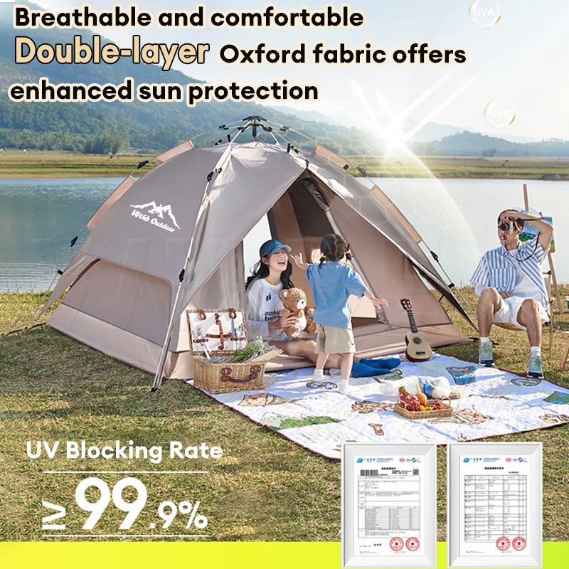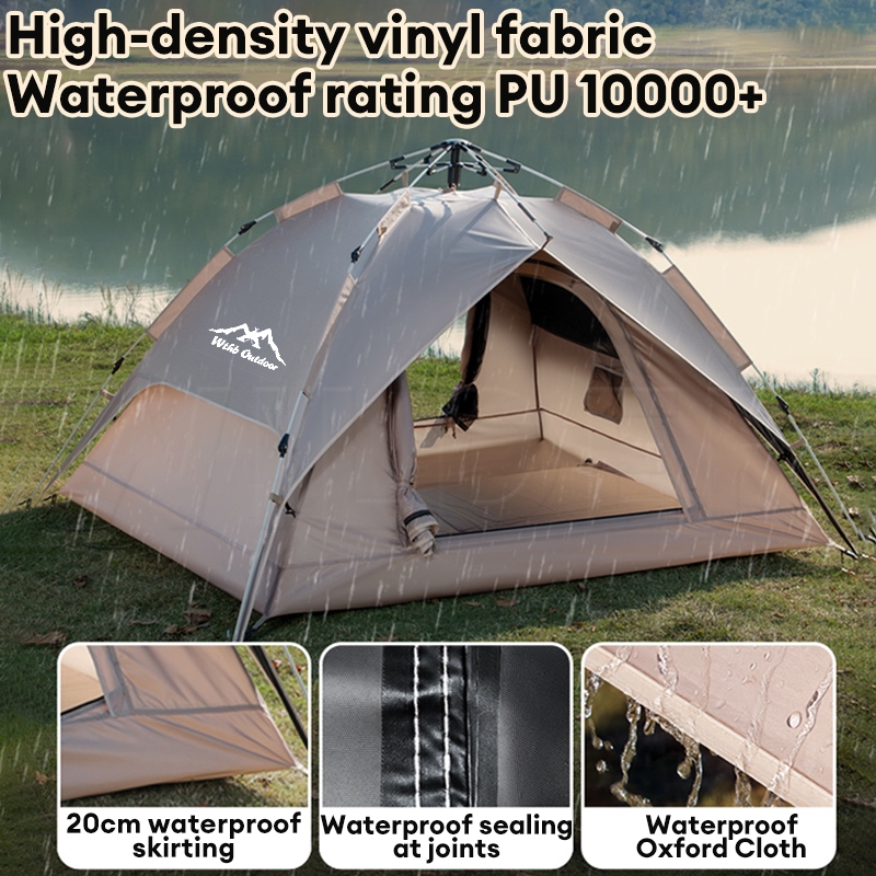 【Waterproof】Automatic Tent Khemah Camping Tent 2 Doors Outdoor UV Foldable Khemah Auto Tents Silver Coating Anti-UV