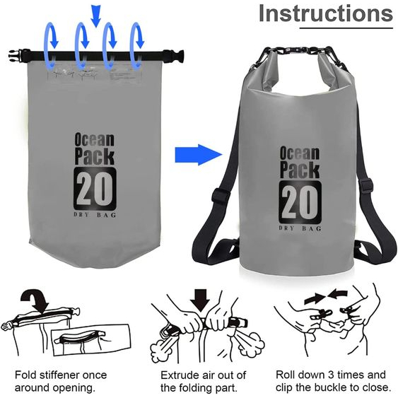 Waterproof Dry Bag 2L-20L Thick Material Beach Hiking Beach Sea Side Pantai Hujan Travel Outdoor Activities
