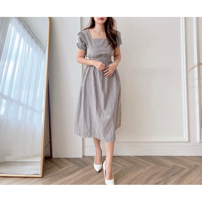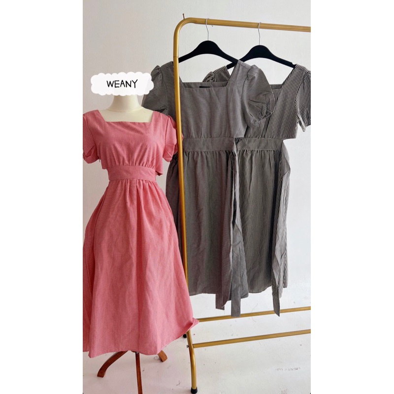 WEANY DRESS DIMPLE MIDI DRESS PREMIUM SIMPLE PLAID MOTIF EC 9363 MIDI DRESS CUT OFF WAIST SIMPLE PREMIUM KOREAN STYLE DRESS/