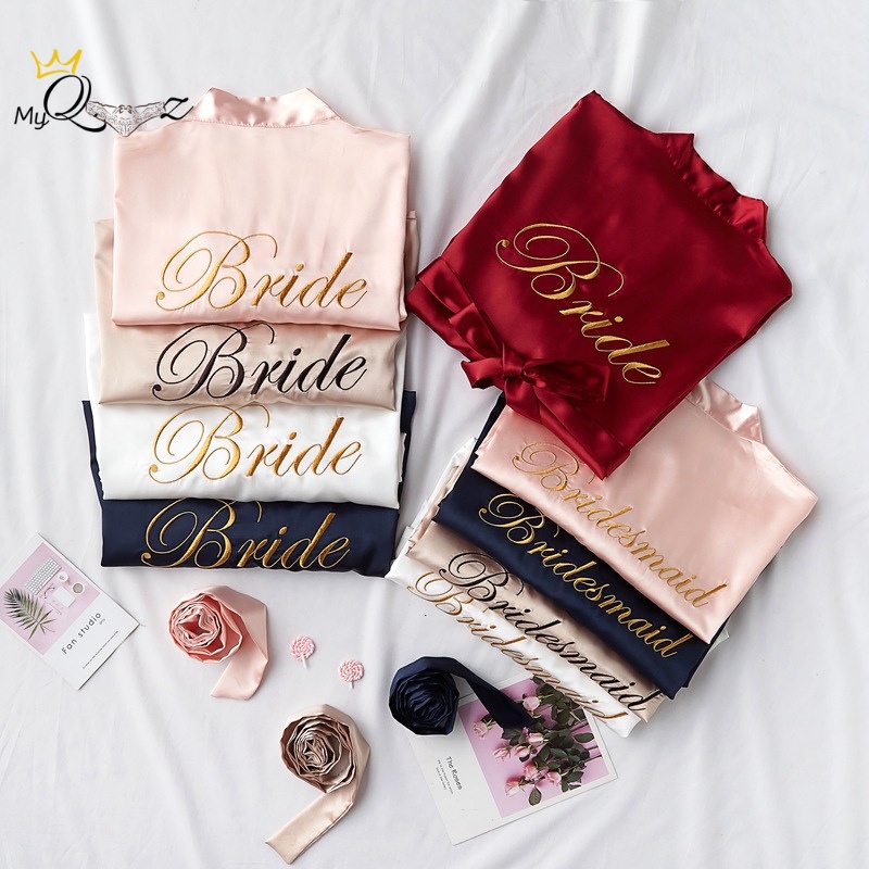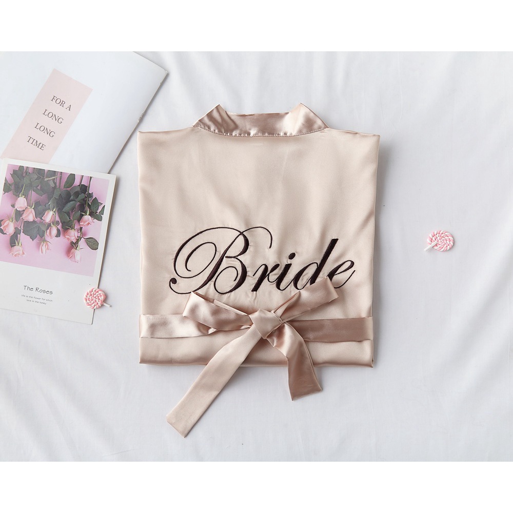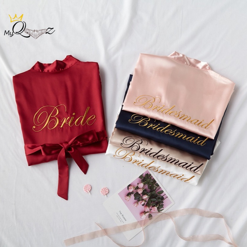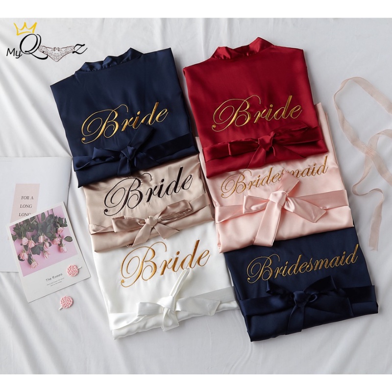 Wedding Party Bride Bridesmaid Robe Silk Pyjamas Bathrobe Sexy Nightwear Kimonos Dresses | Jubah Satin Pajamas | 新娘 伴娘睡袍
