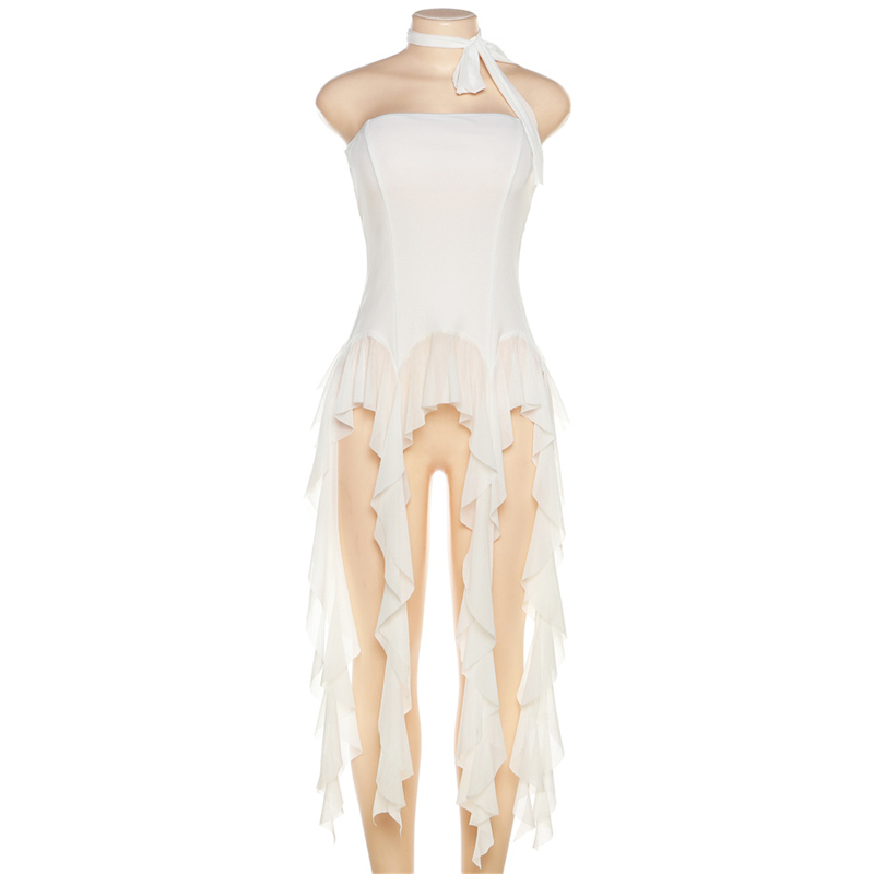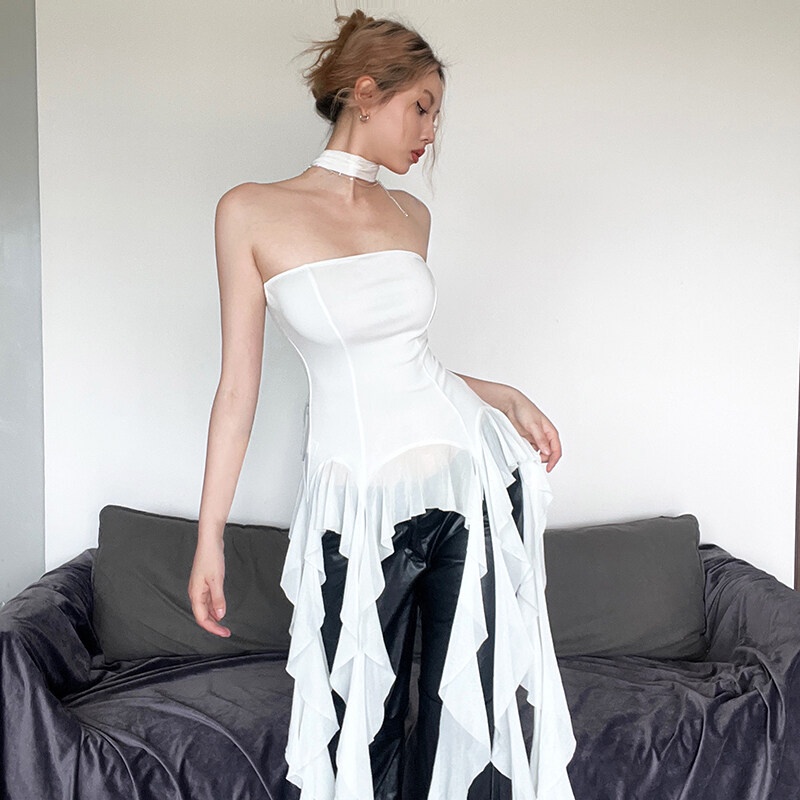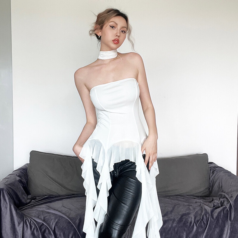 Weird Puss Summer Fashion Womens Irregular Tassels Design Off Shoulder Plain Camisoles Strapless Tube Tops Sexy Vest