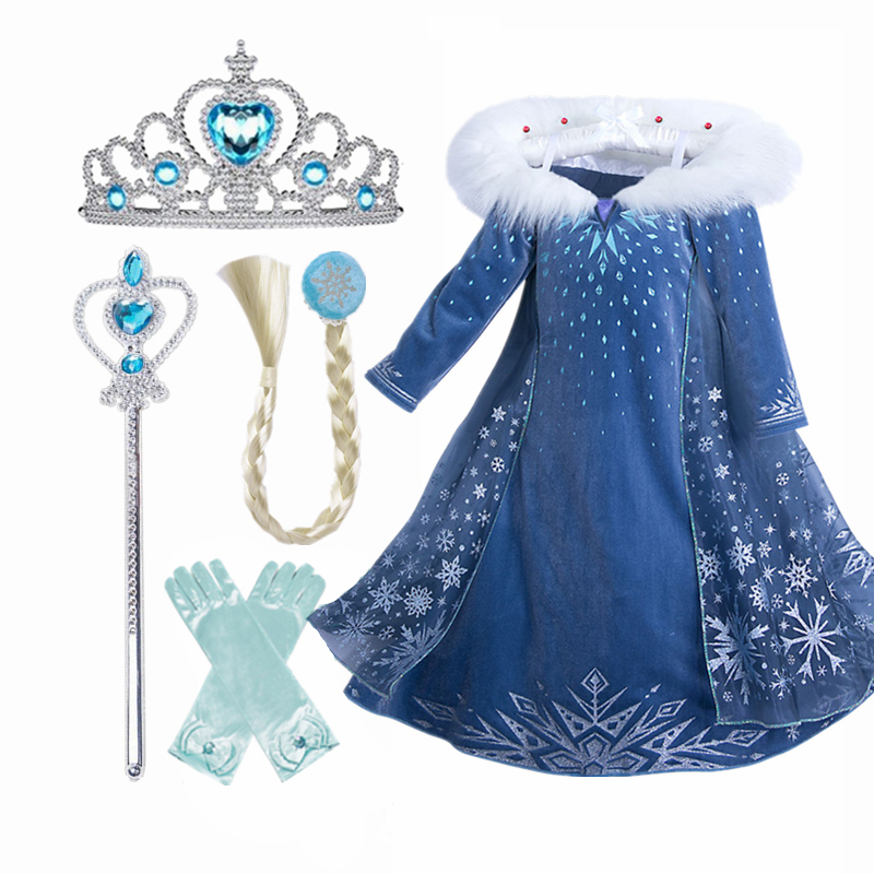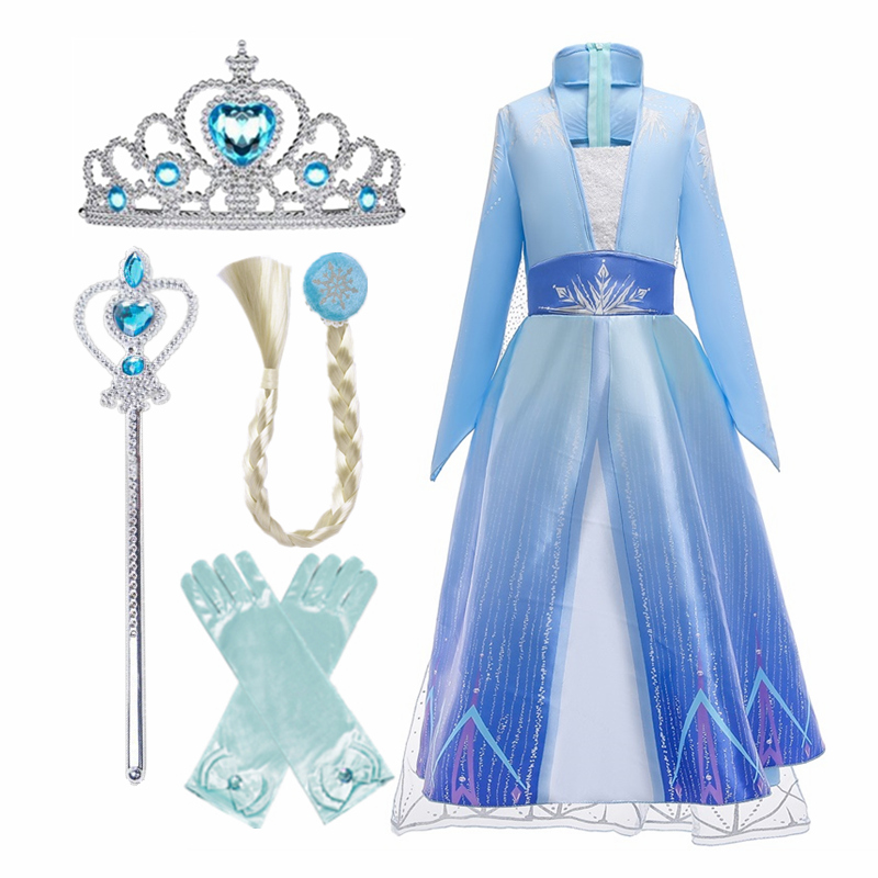 WFRV Frozen 2 Dress New Princess Dress Girl Cosplay Costume for Halloween Christmas Dress Party Vestido Long Sleeve Girls Winter Dress