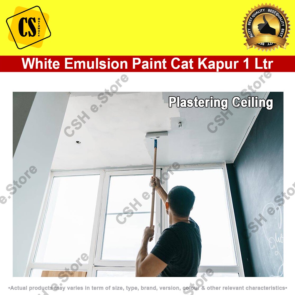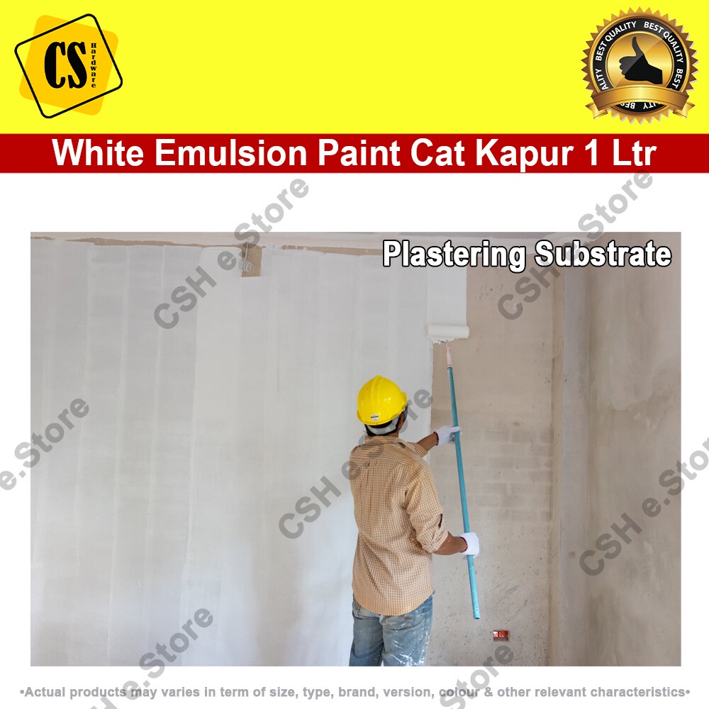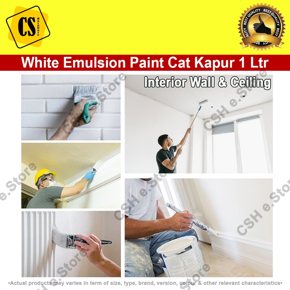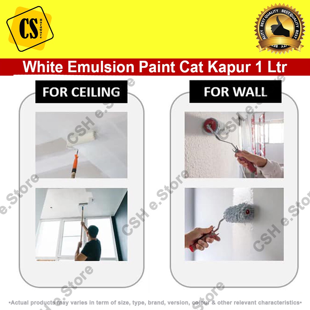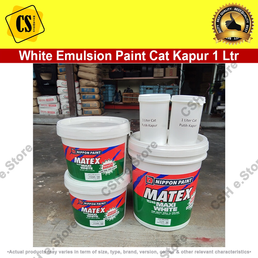 White Paint White Emulsion Paint Cat Putih Kapur Air 1 Liter for interior wall ceiling emulsion (White/Putih) Repacked