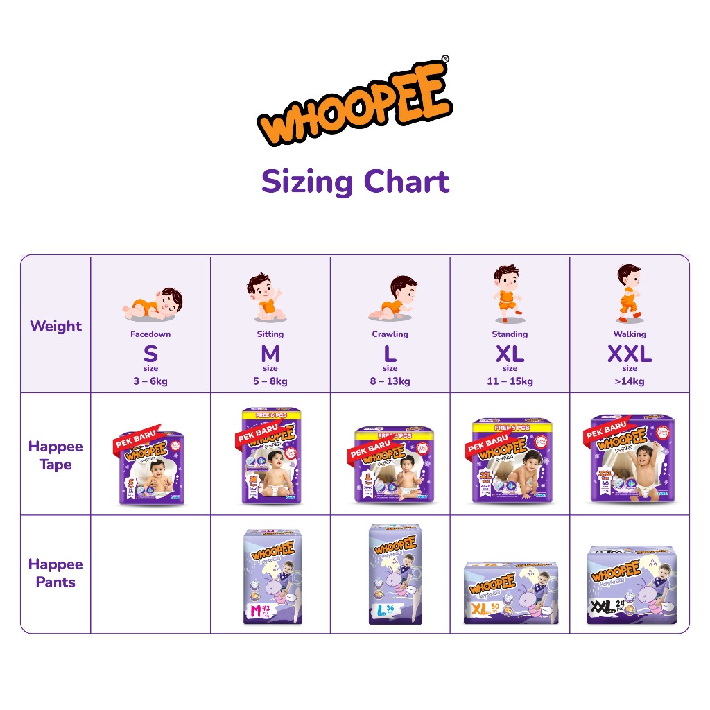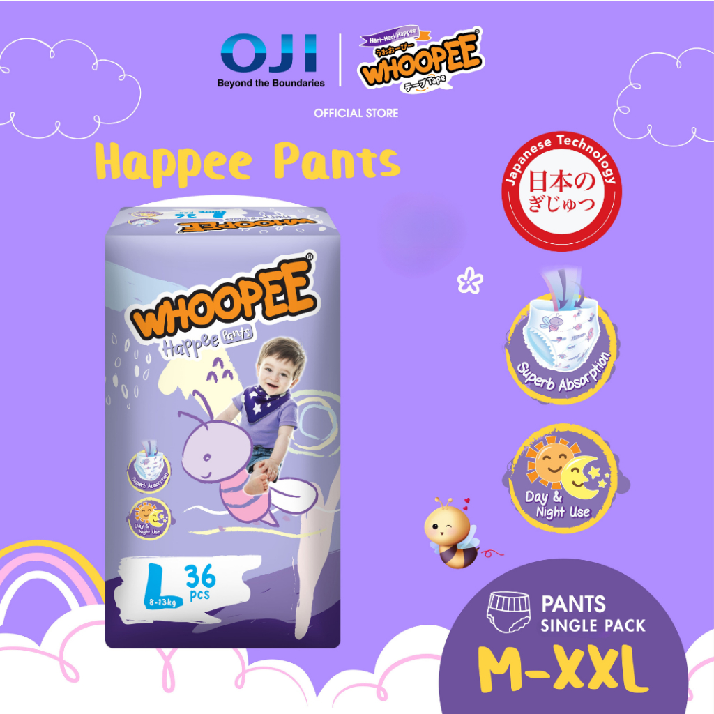 Whoopee Jumbo Pants Diapers Baby - Size M (42's)/L (36's)/XL (30's)/XXL (24's)